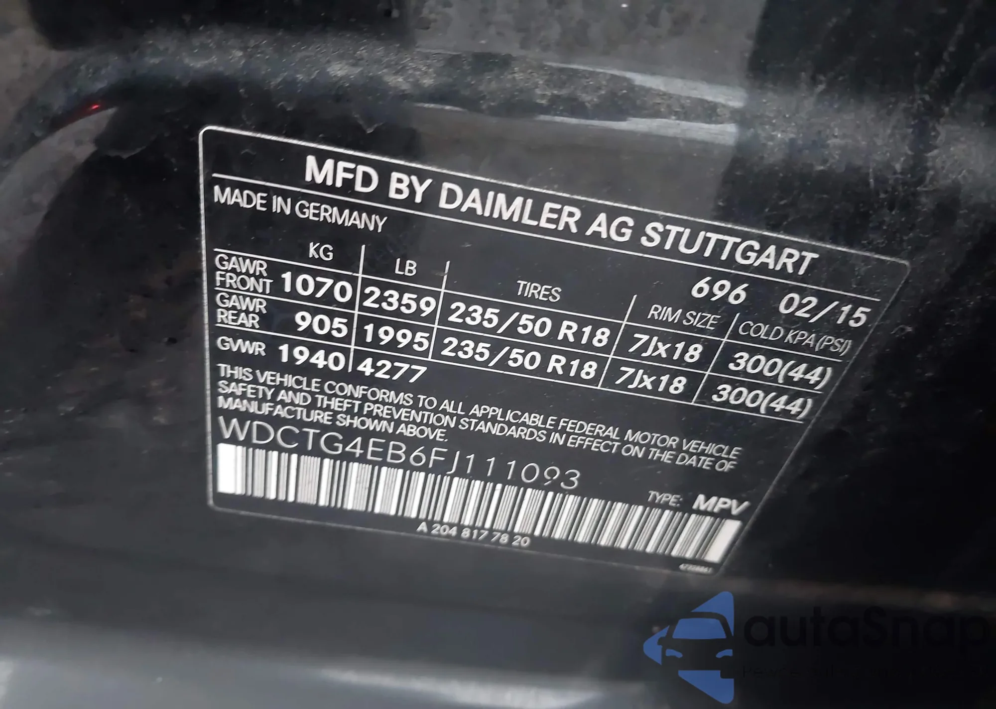 VIN: WDCTG4EB6FJ111093