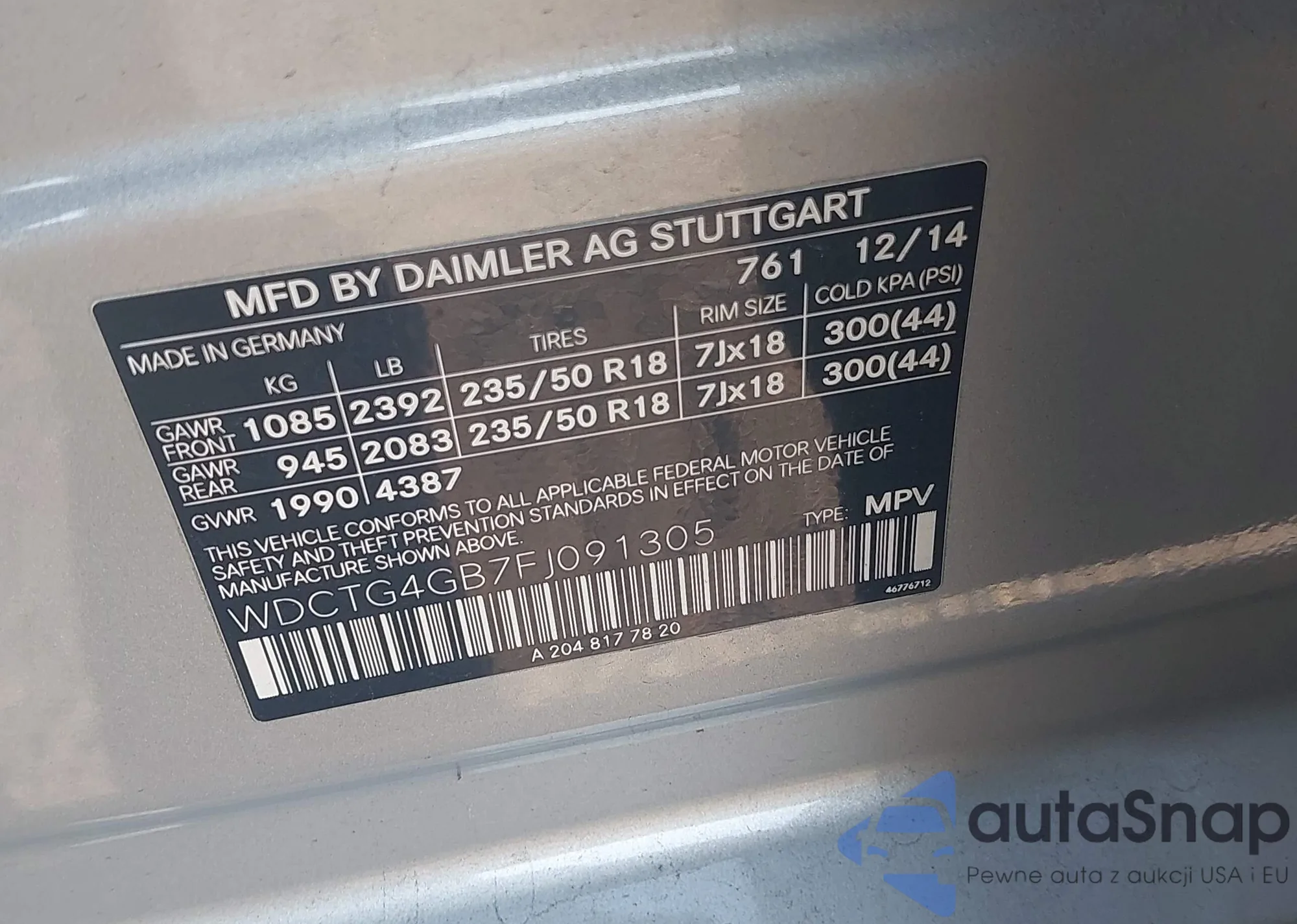 VIN: WDCTG4GB7FJ091305