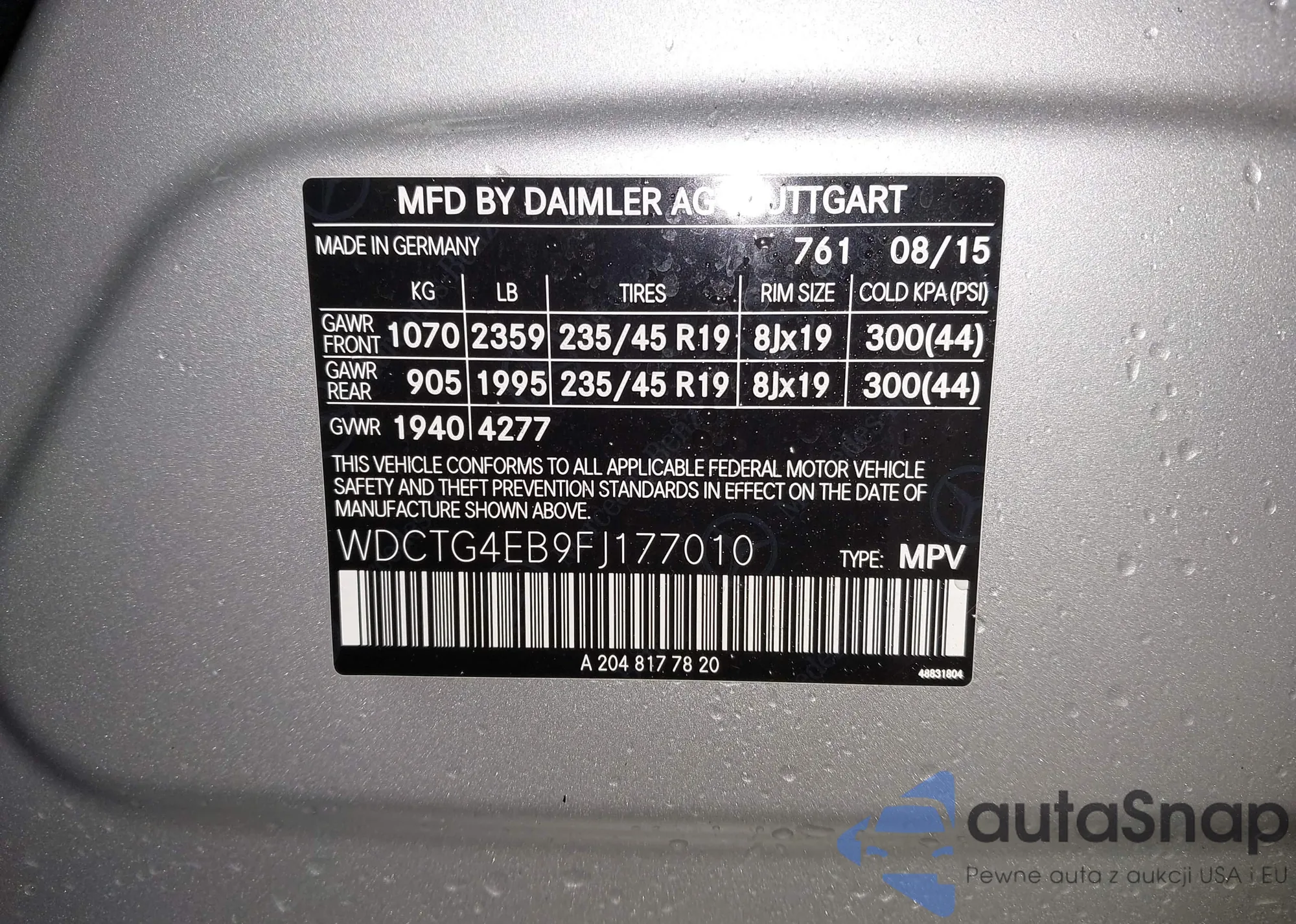 VIN: WDCTG4EB9FJ177010