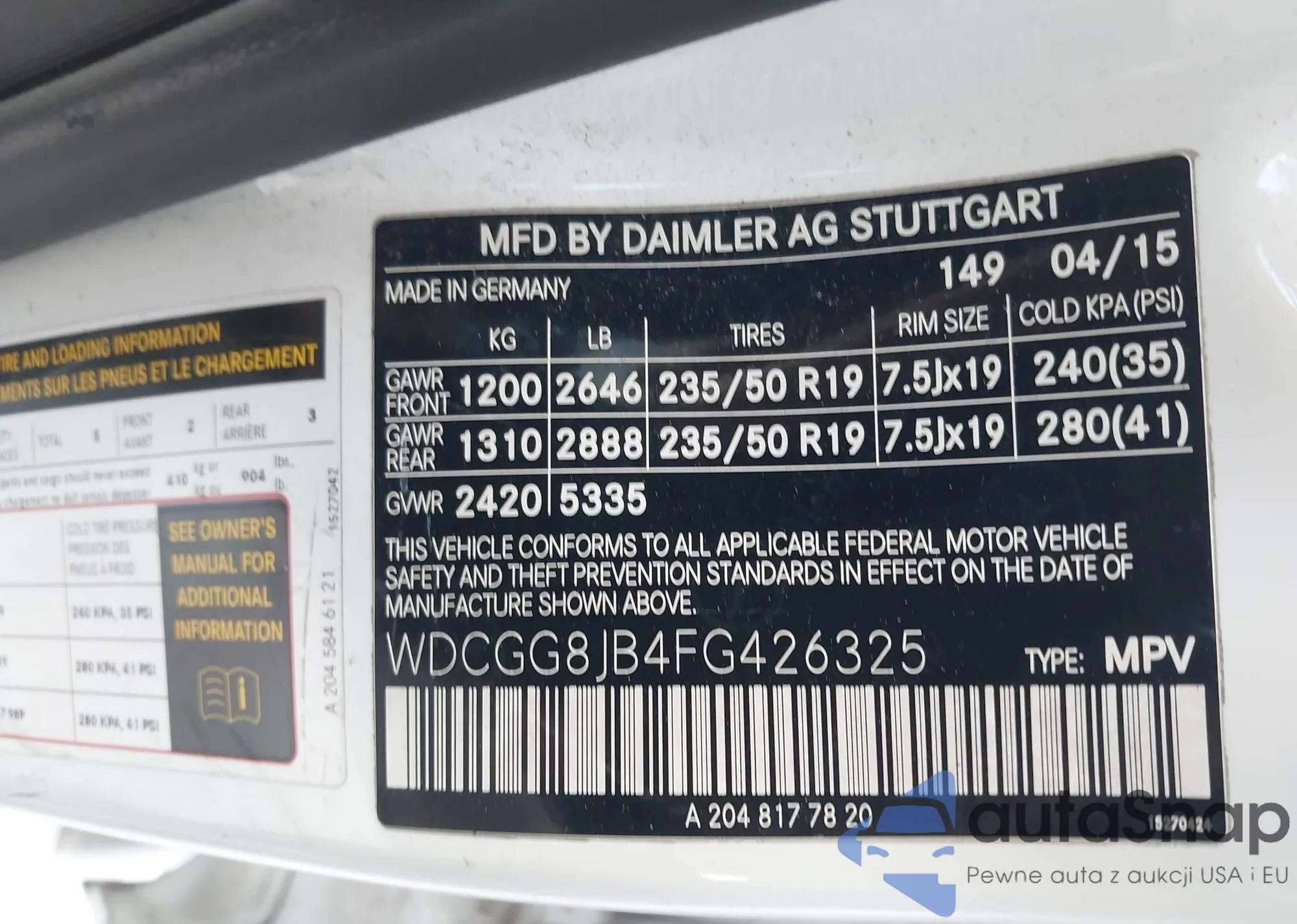 VIN: WDCGG8JB4FG426325