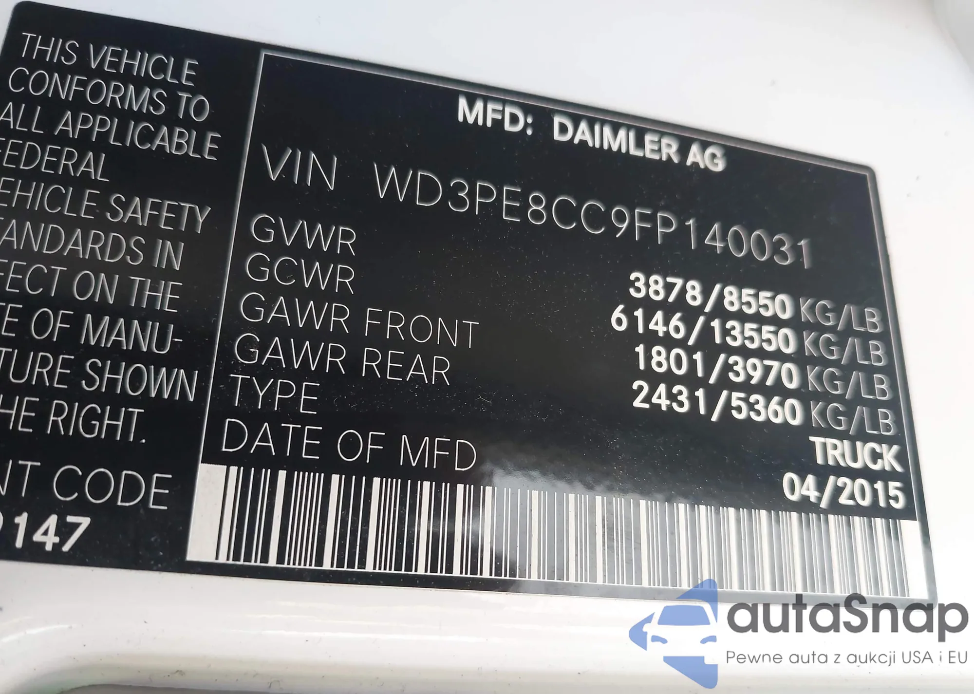 VIN: WD3PE8CC9FP140031