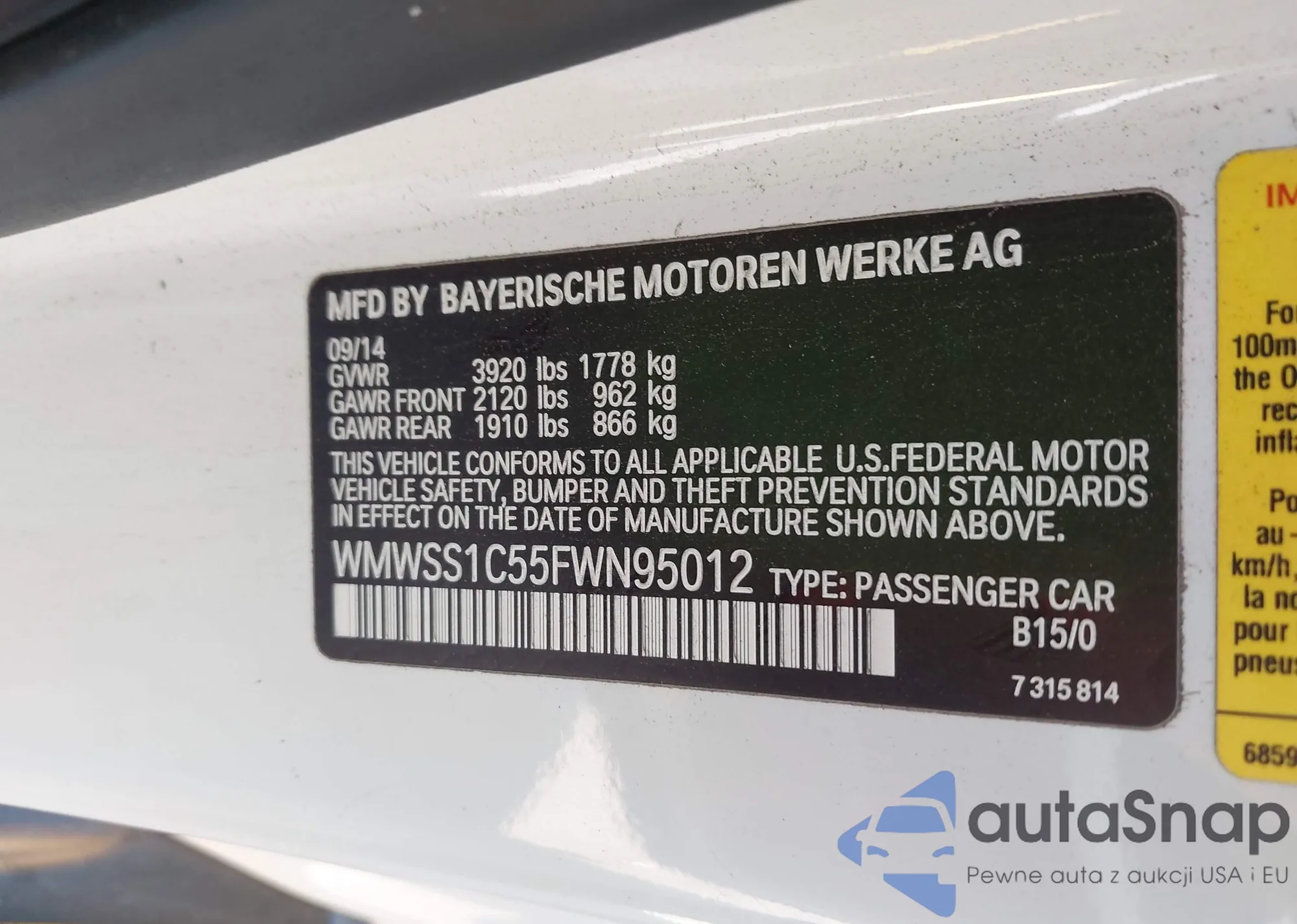 VIN: WMWSS1C55FWN95012