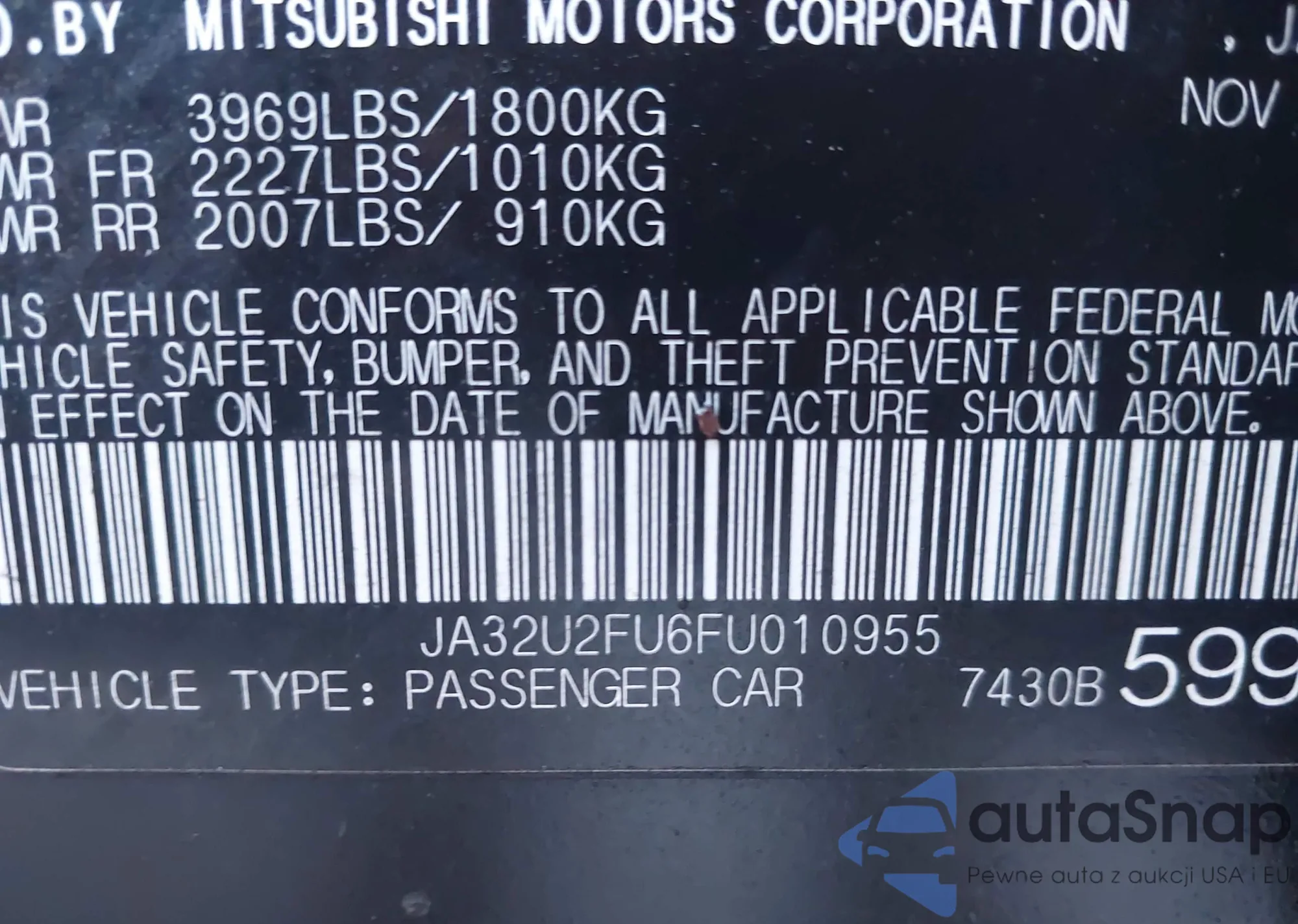 • VIN: JA32U2FU6FU010955