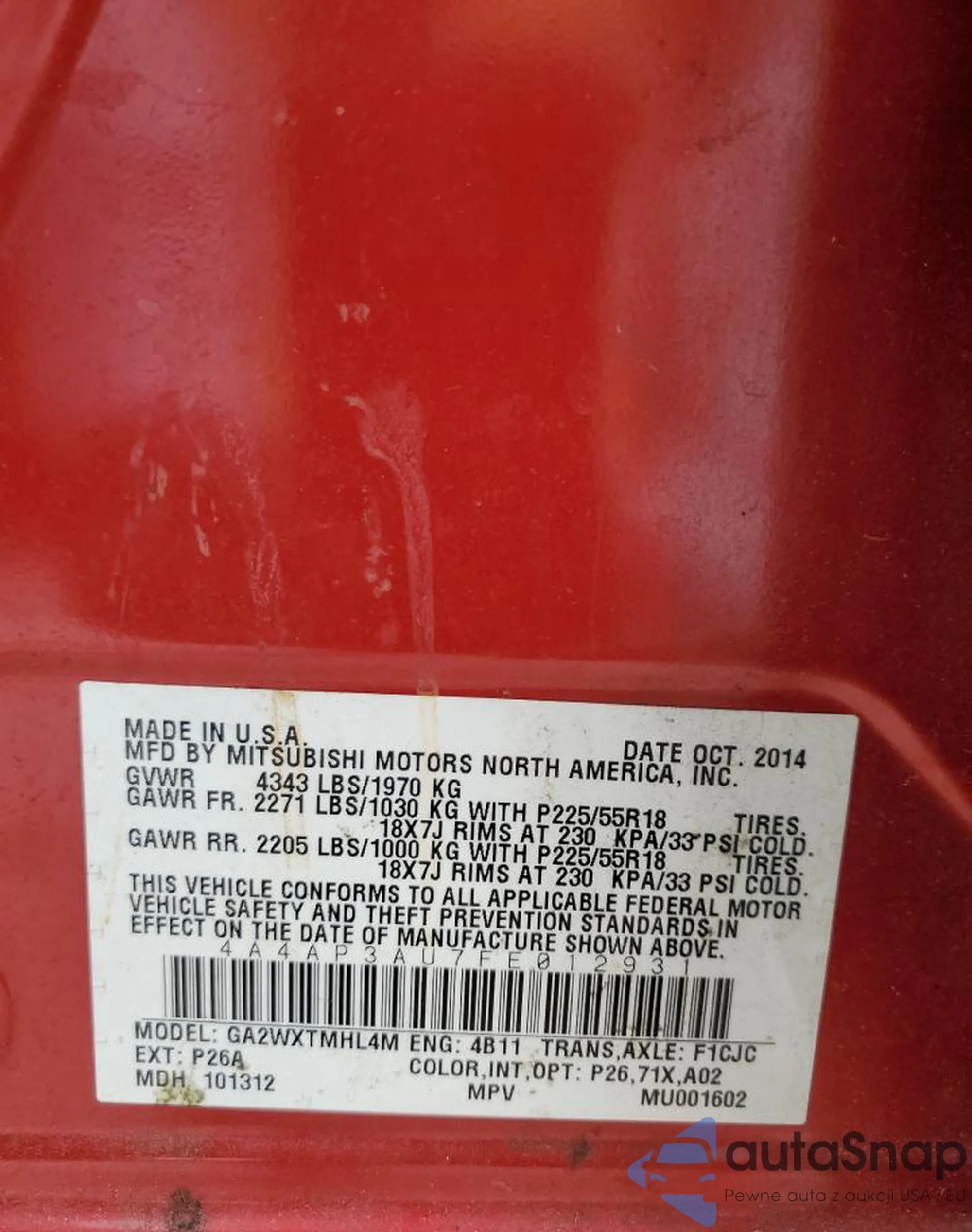 Mitsubishi Outlander 2015 – Historia pojazdu (sprzedany na COPART)