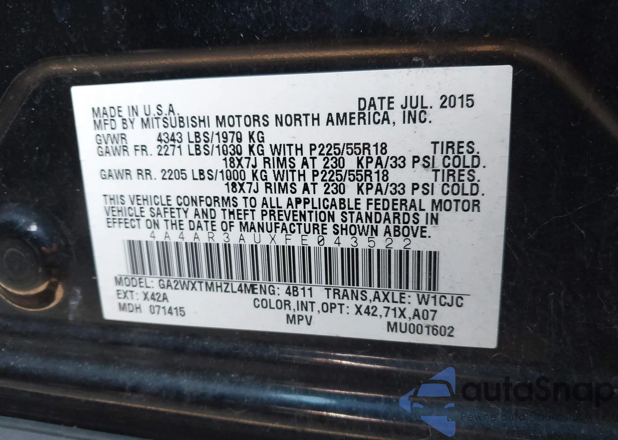 VIN: 4A4AR3AUXFE043522