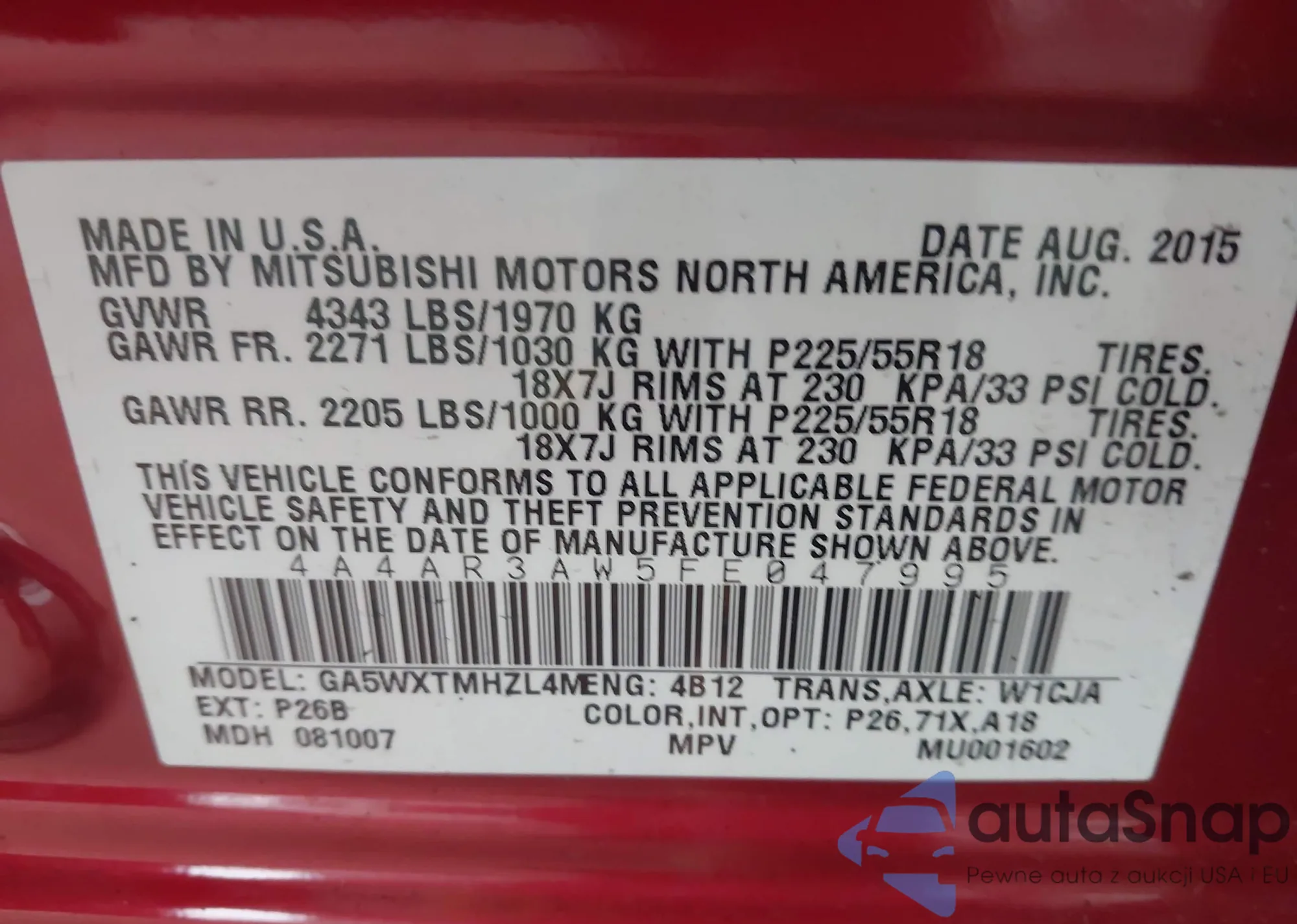 VIN: 4A4AR3AW5FE047995
