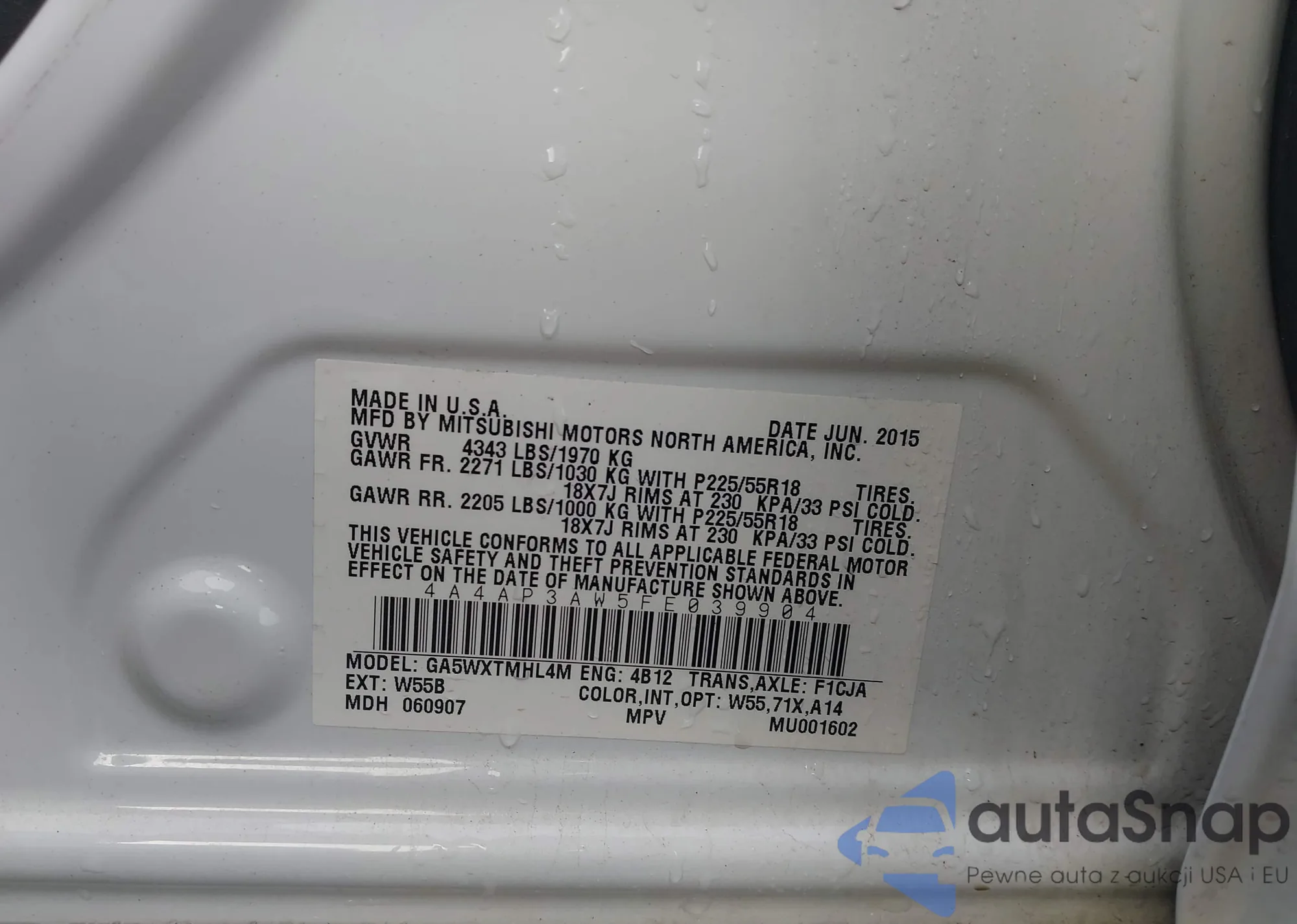 Mitsubishi Outlander 2015 – Historia pojazdu (sprzedany na IAAI)
