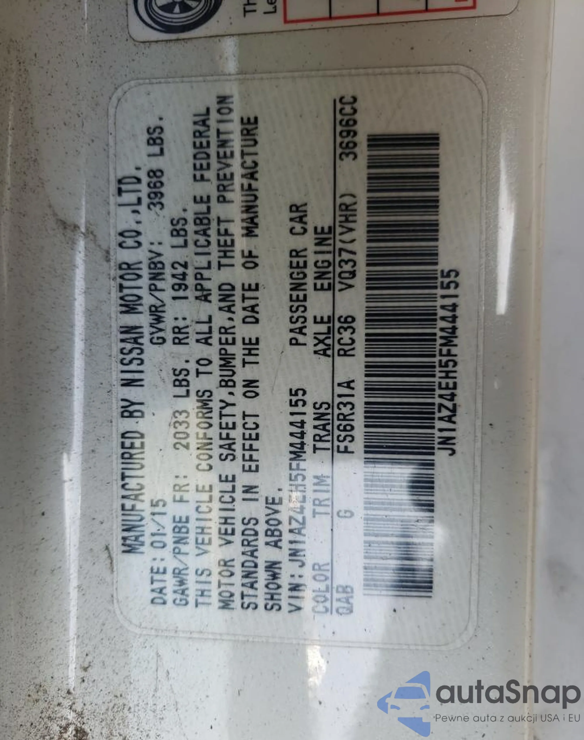 • VIN: JN1AZ4EH5FM444155