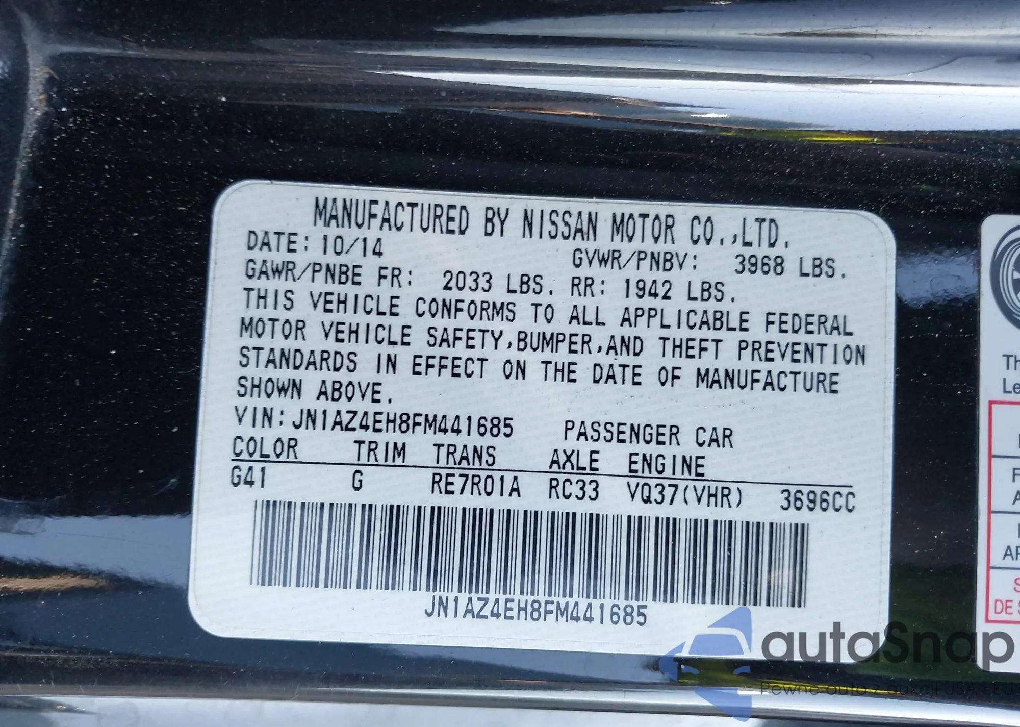 • VIN: JN1AZ4EH8FM441685