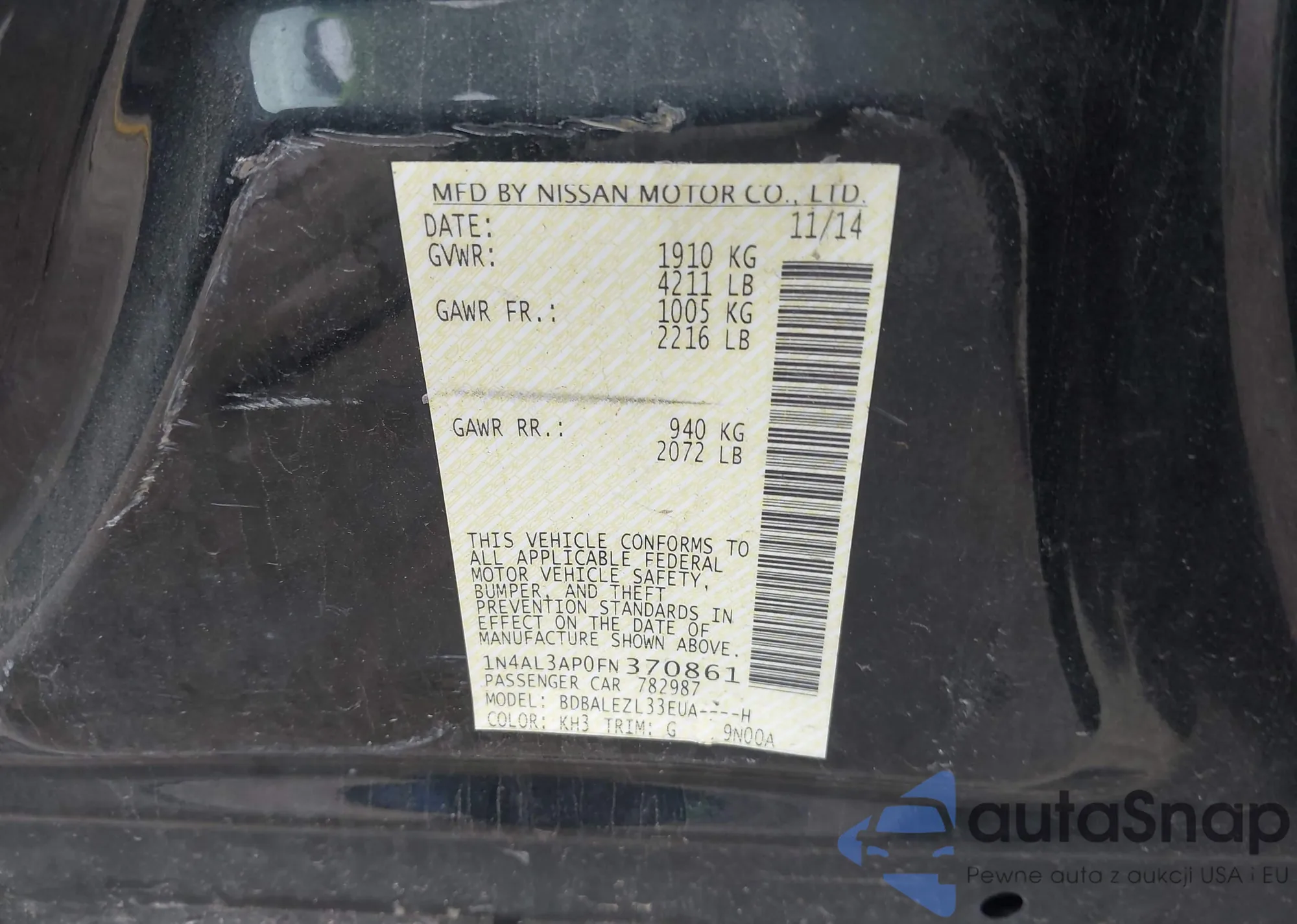 VIN: 1N4AL3AP0FN370861