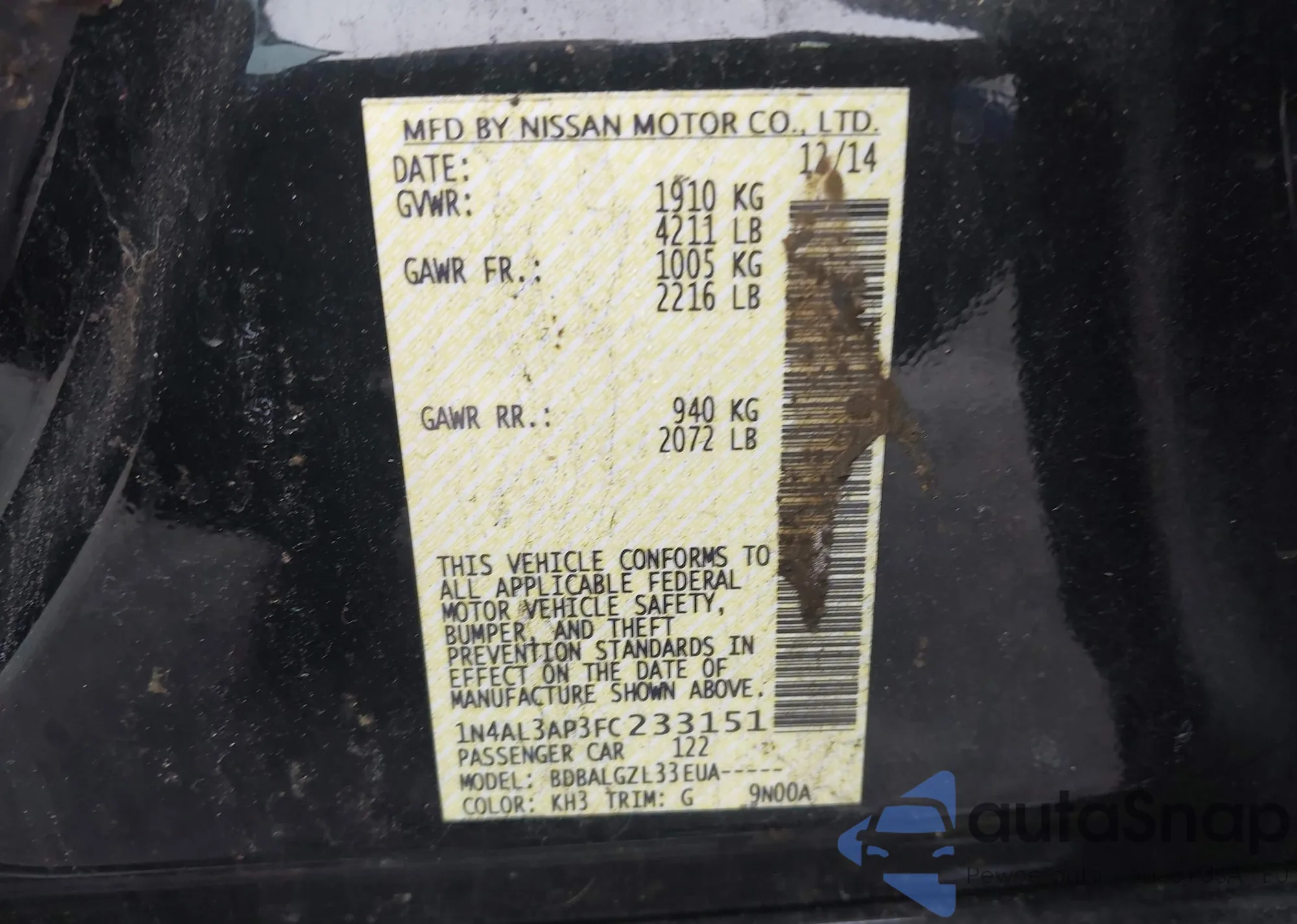 VIN: 1N4AL3AP3FC233151