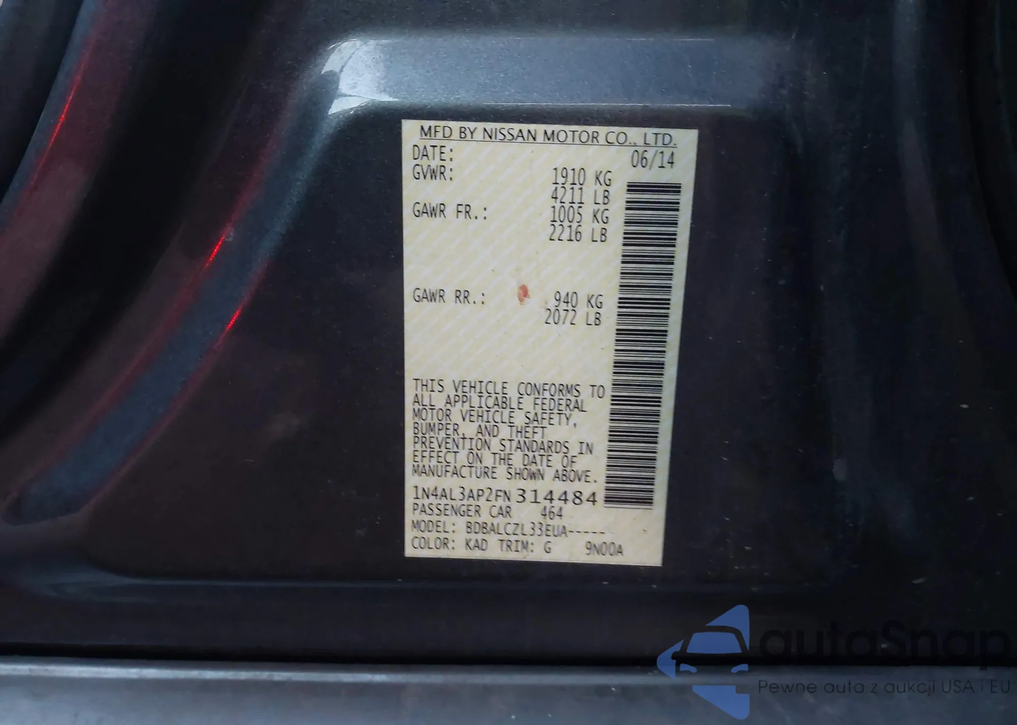 VIN: 1N4AL3AP2FN314484