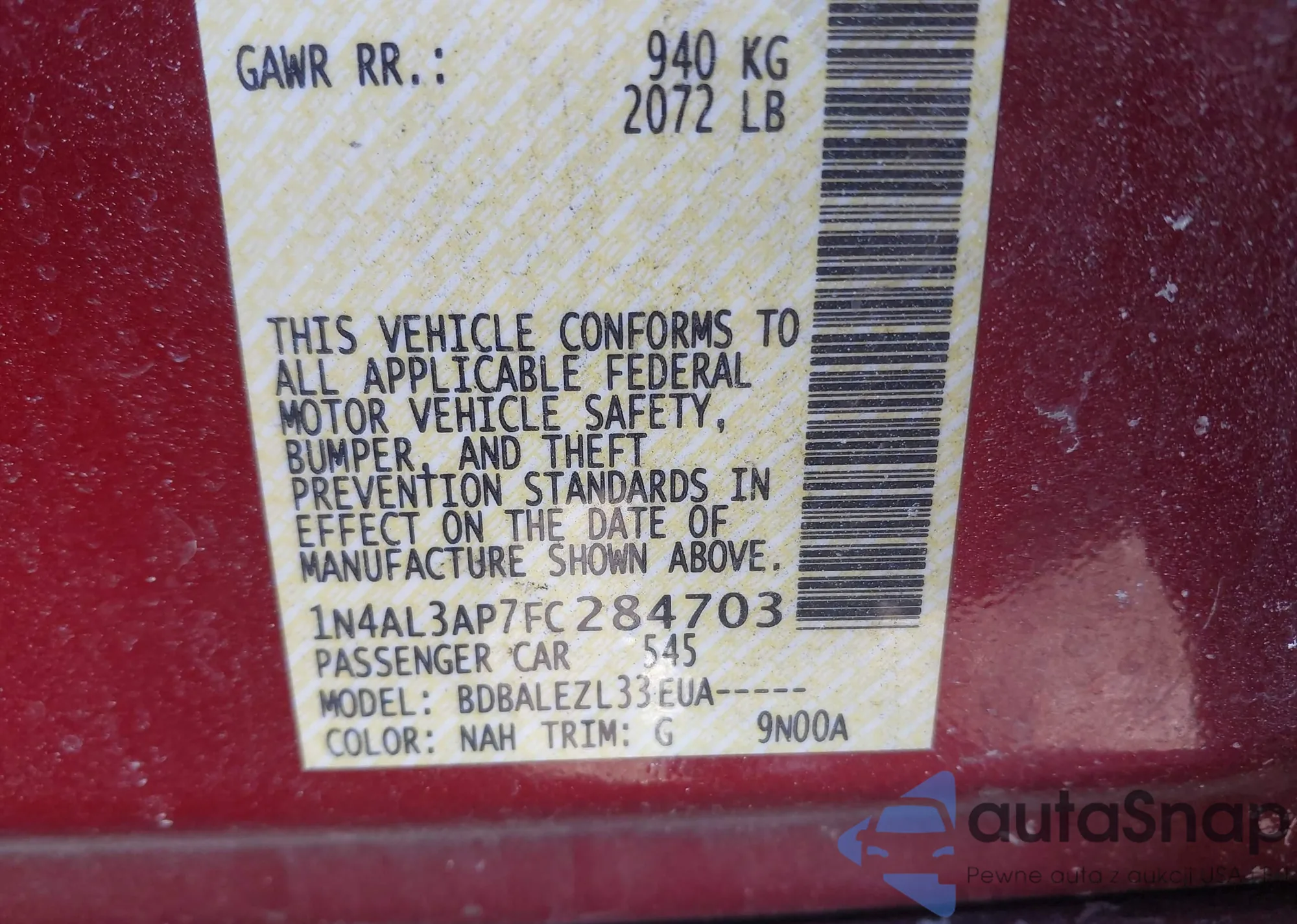• VIN: 1N4AL3AP7FC284703