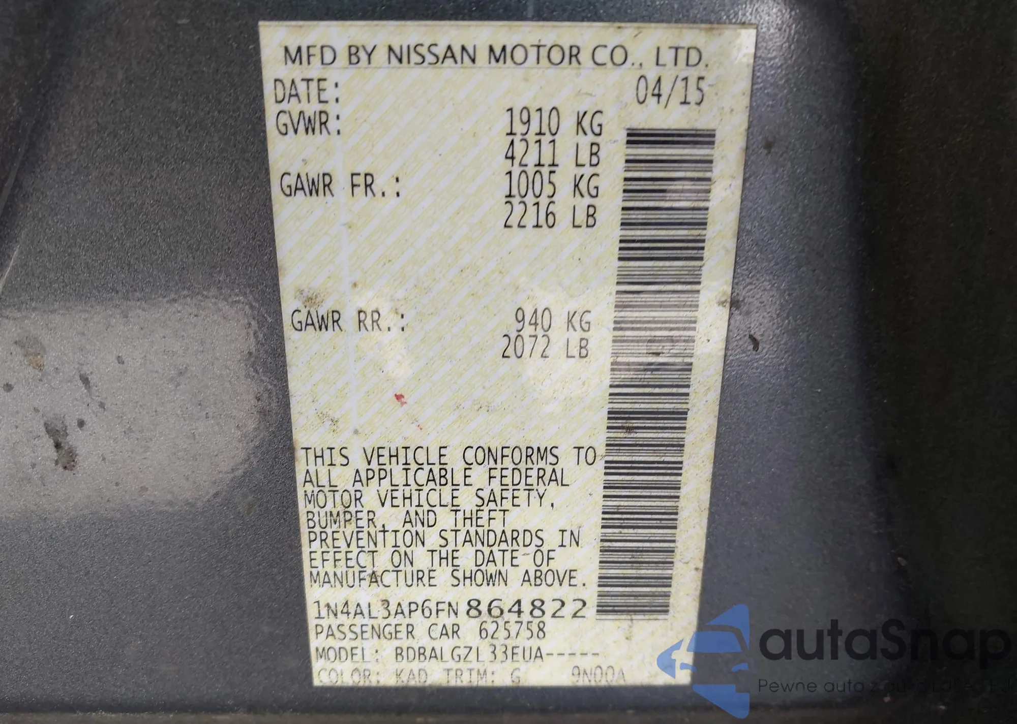 VIN: 1N4AL3AP6FN864822