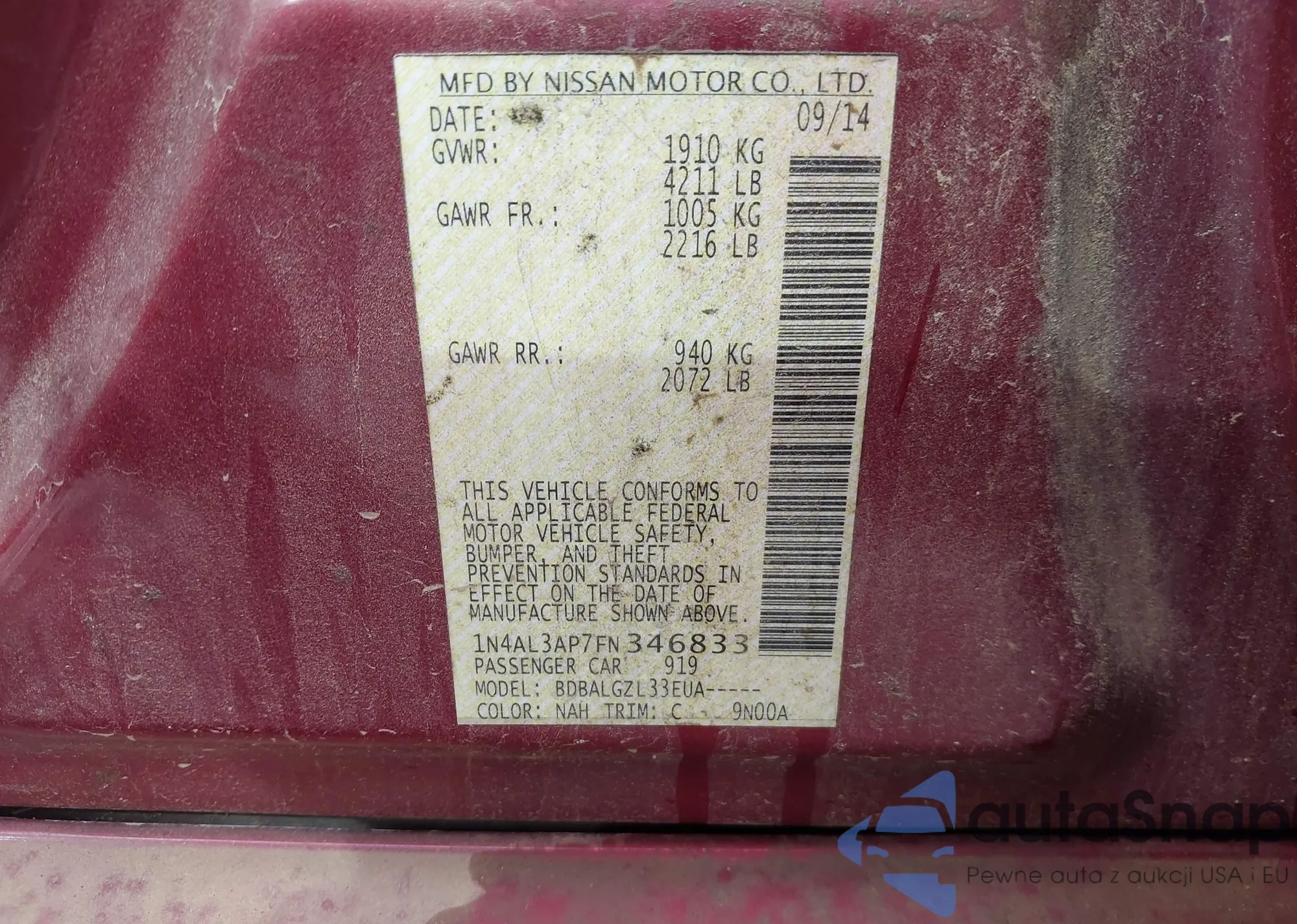• VIN: 1N4AL3AP7FN346833