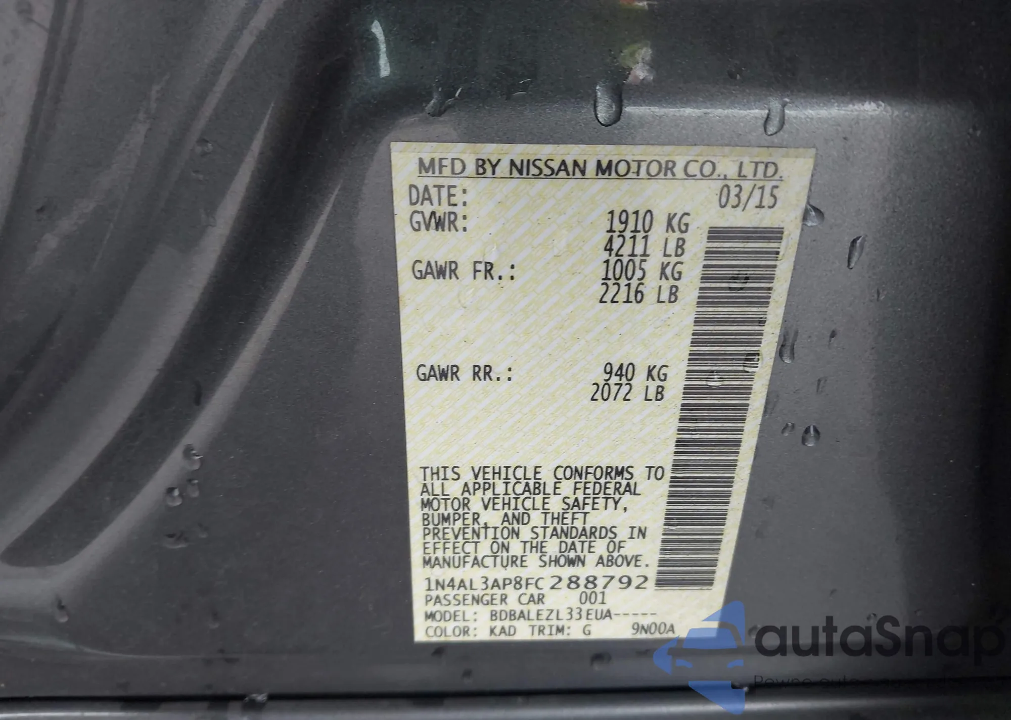 VIN: 1N4AL3AP8FC288792