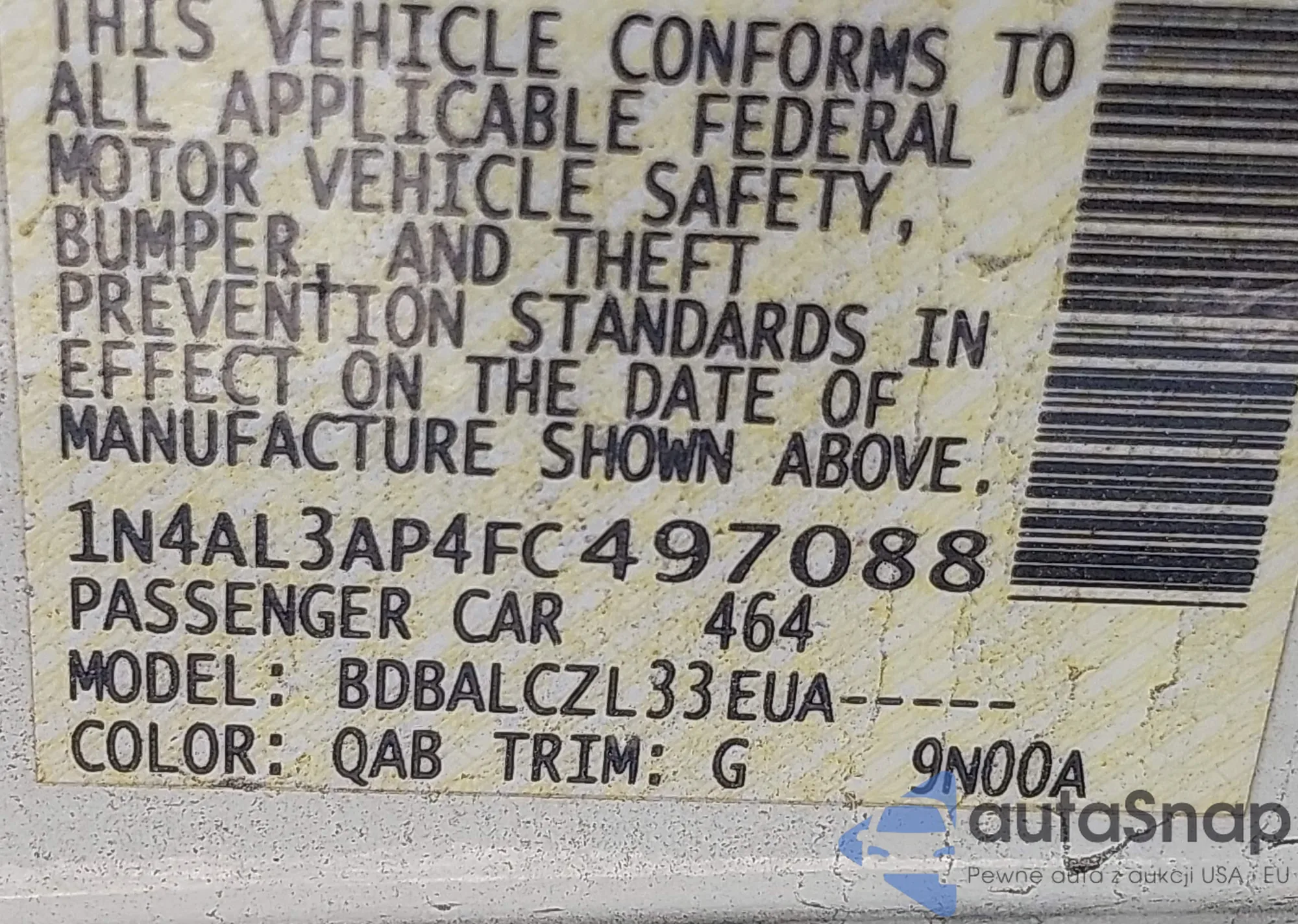 VIN: 1N4AL3AP4FC497088