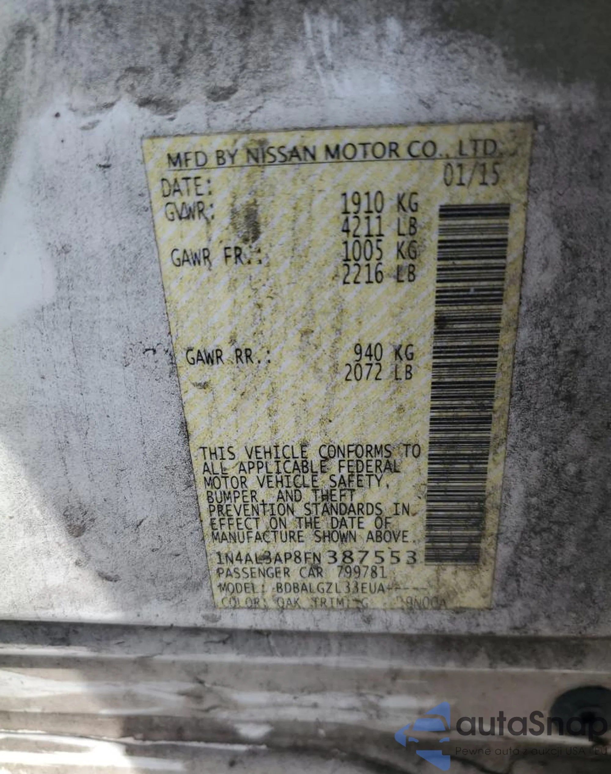 • VIN: 1N4AL3AP8FN387553