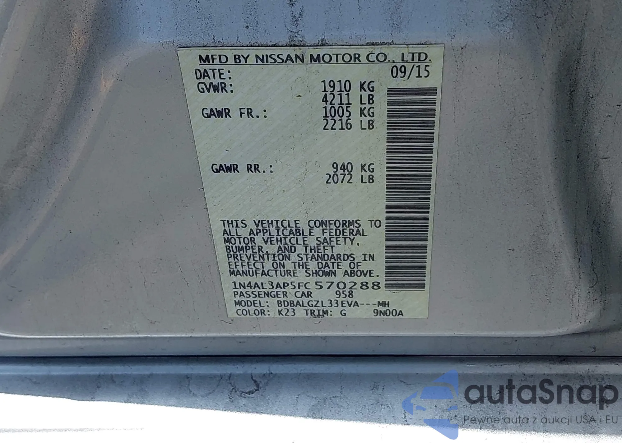 • VIN: 1N4AL3AP5FC570288