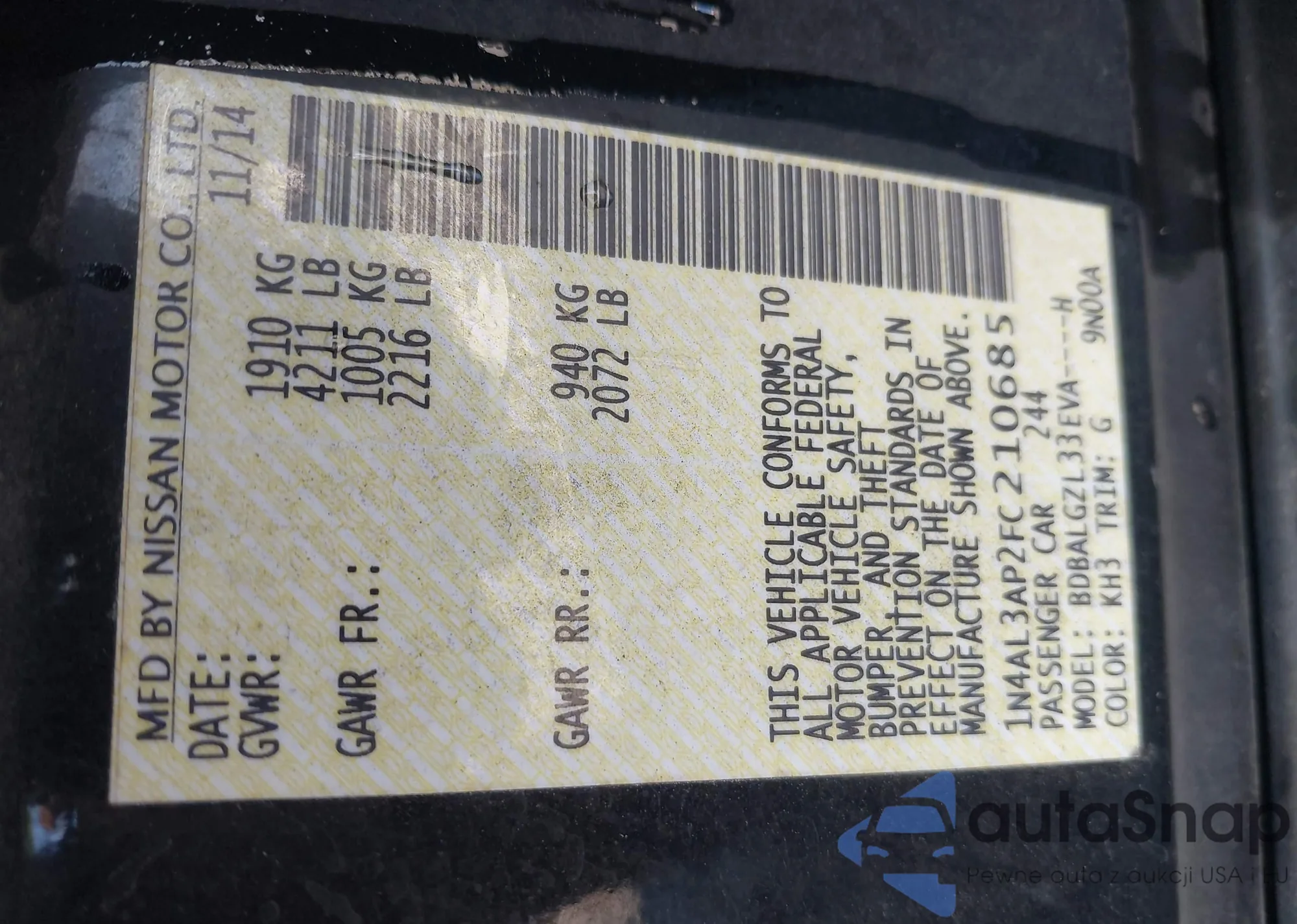 VIN: 1N4AL3AP2FC210685