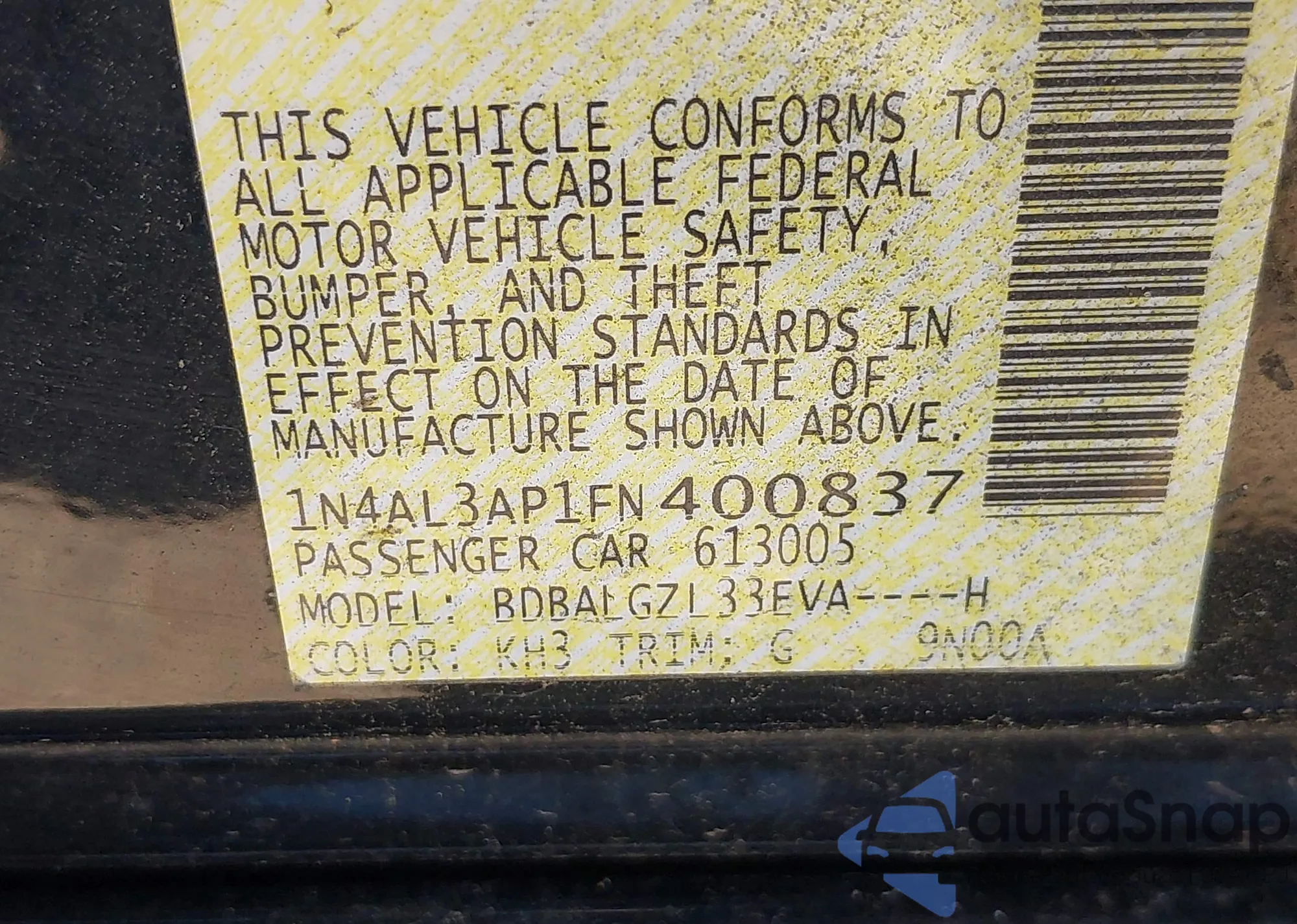 VIN: 1N4AL3AP1FN400837
