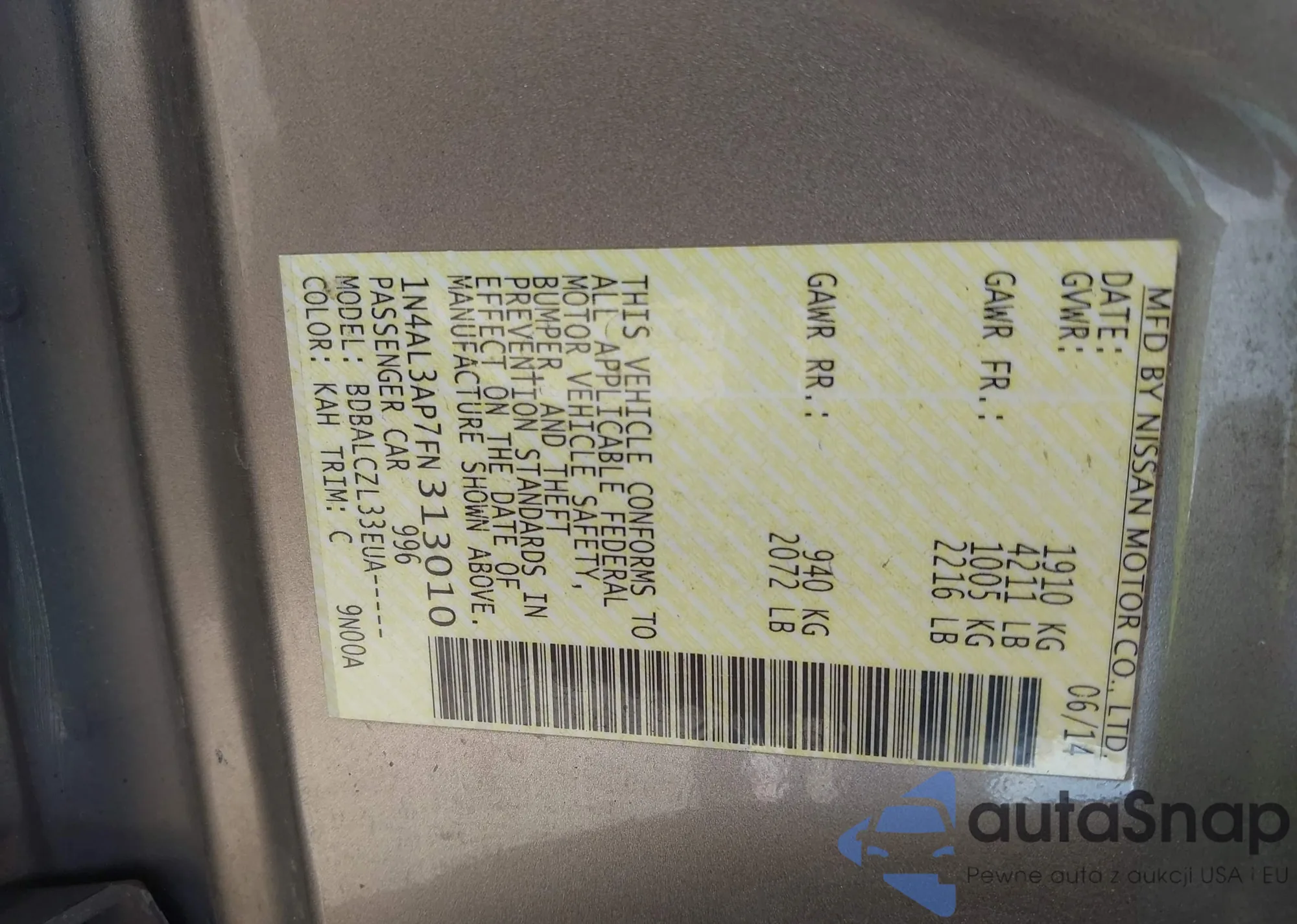 VIN: 1N4AL3AP7FN313010