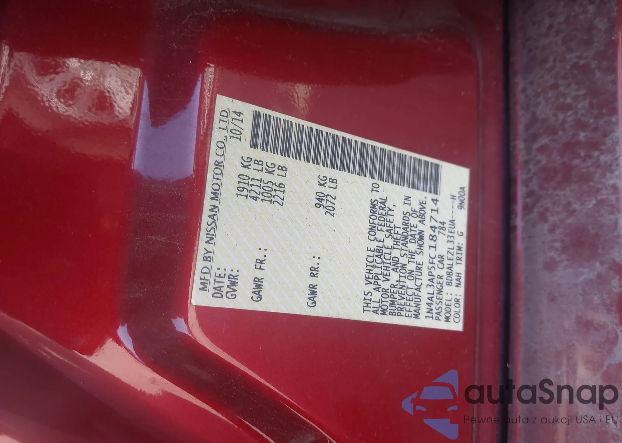 VIN: 1N4AL3AP5FC184714
