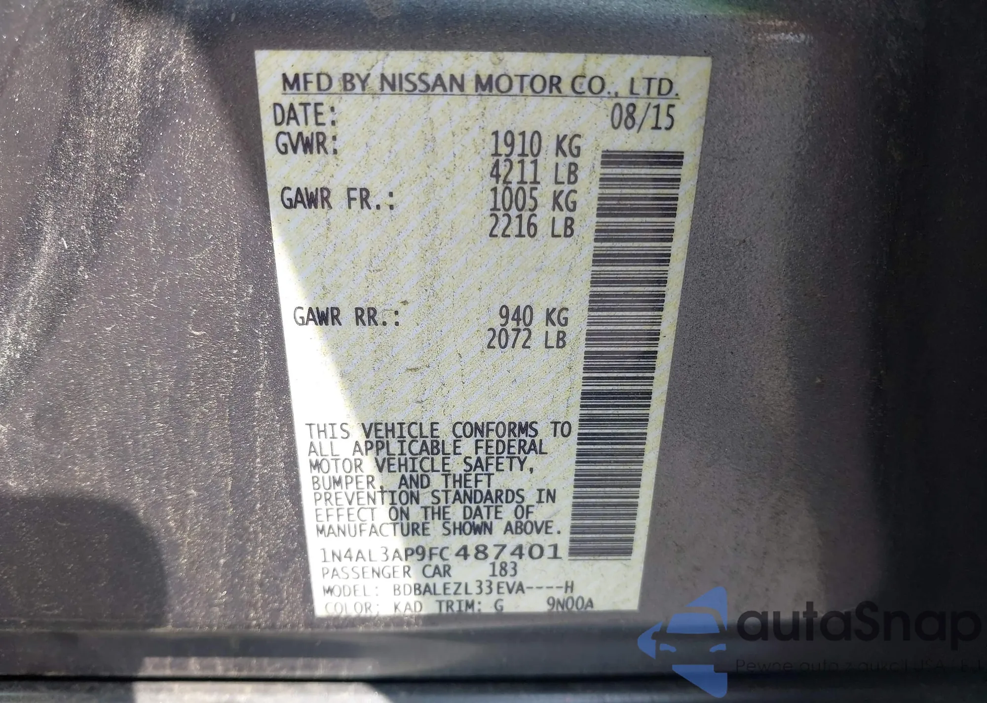 VIN: 1N4AL3AP9FC487401