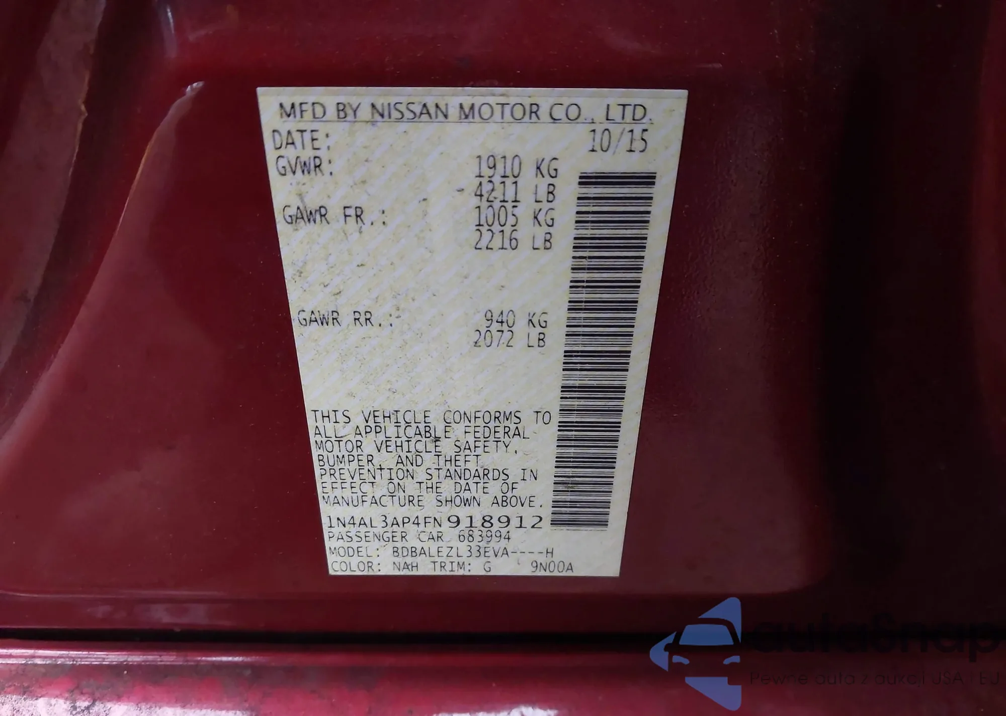 VIN: 1N4AL3AP4FN918912