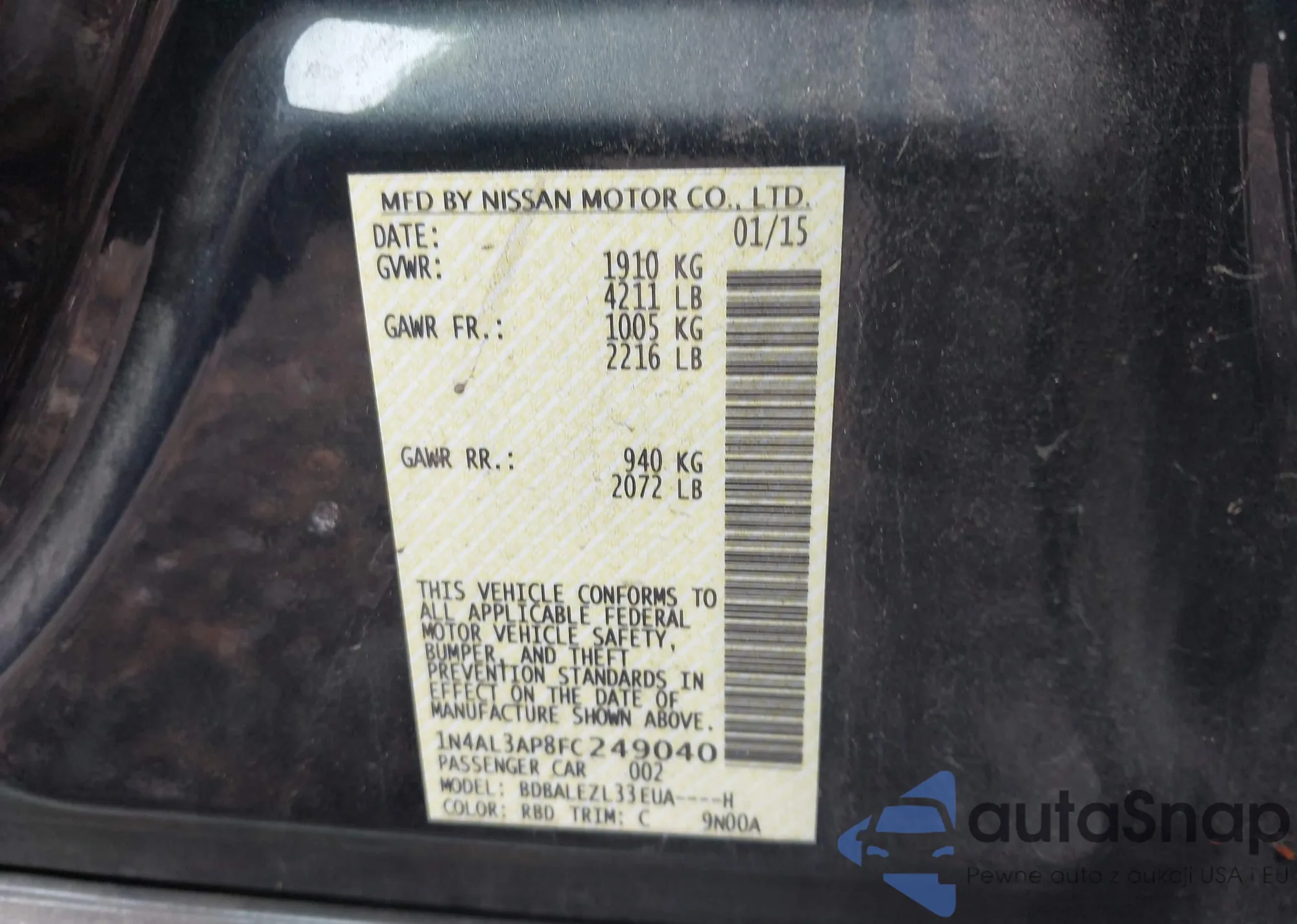 VIN: 1N4AL3AP8FC249040