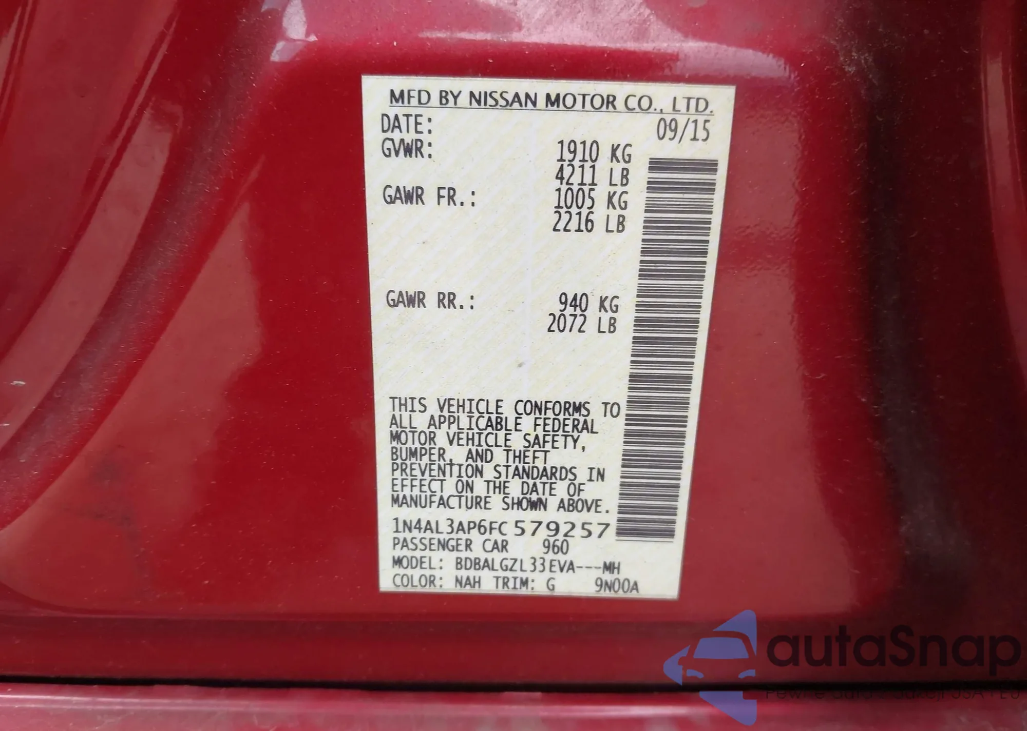 VIN: 1N4AL3AP6FC579257