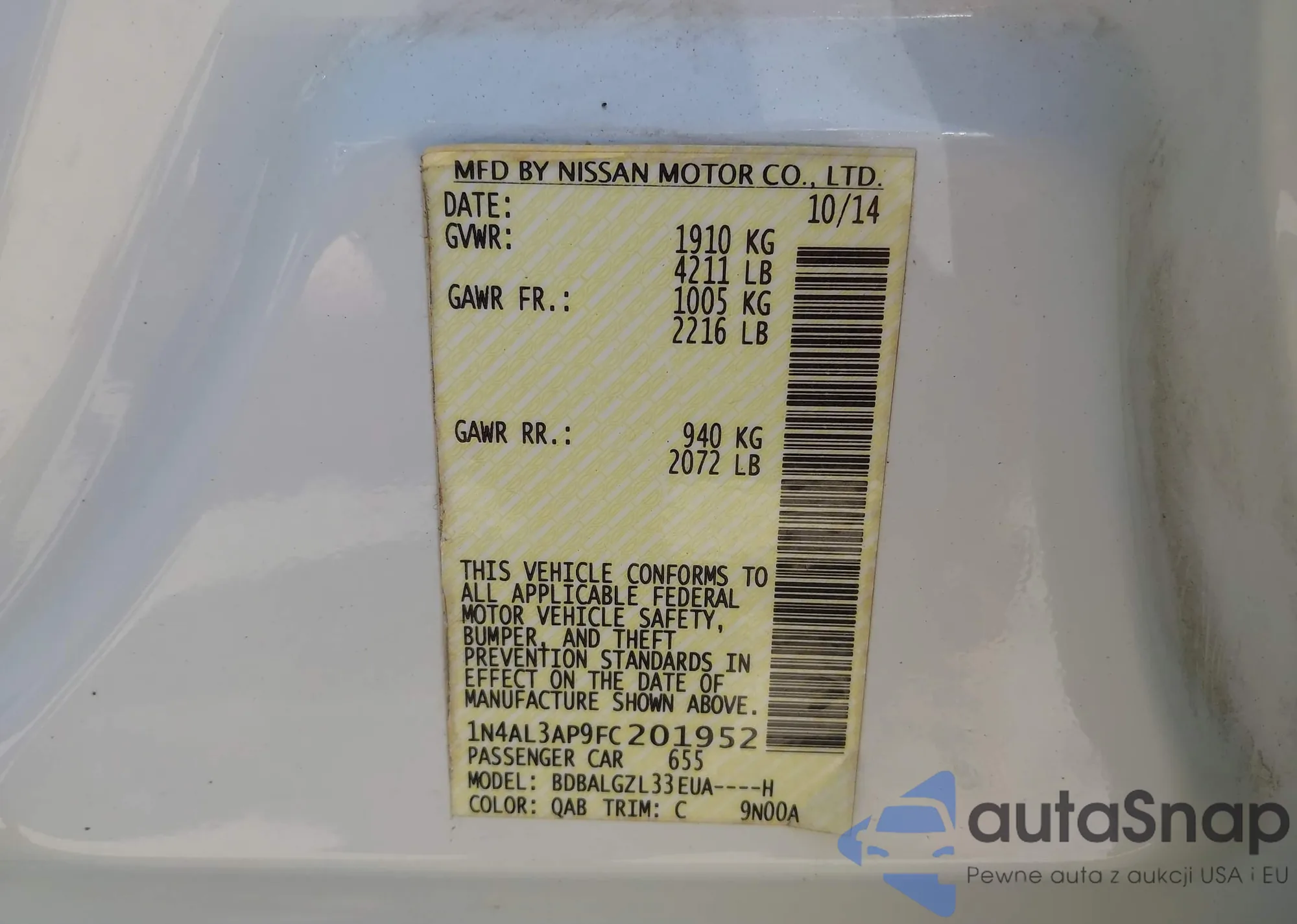 VIN: 1N4AL3AP9FC201952