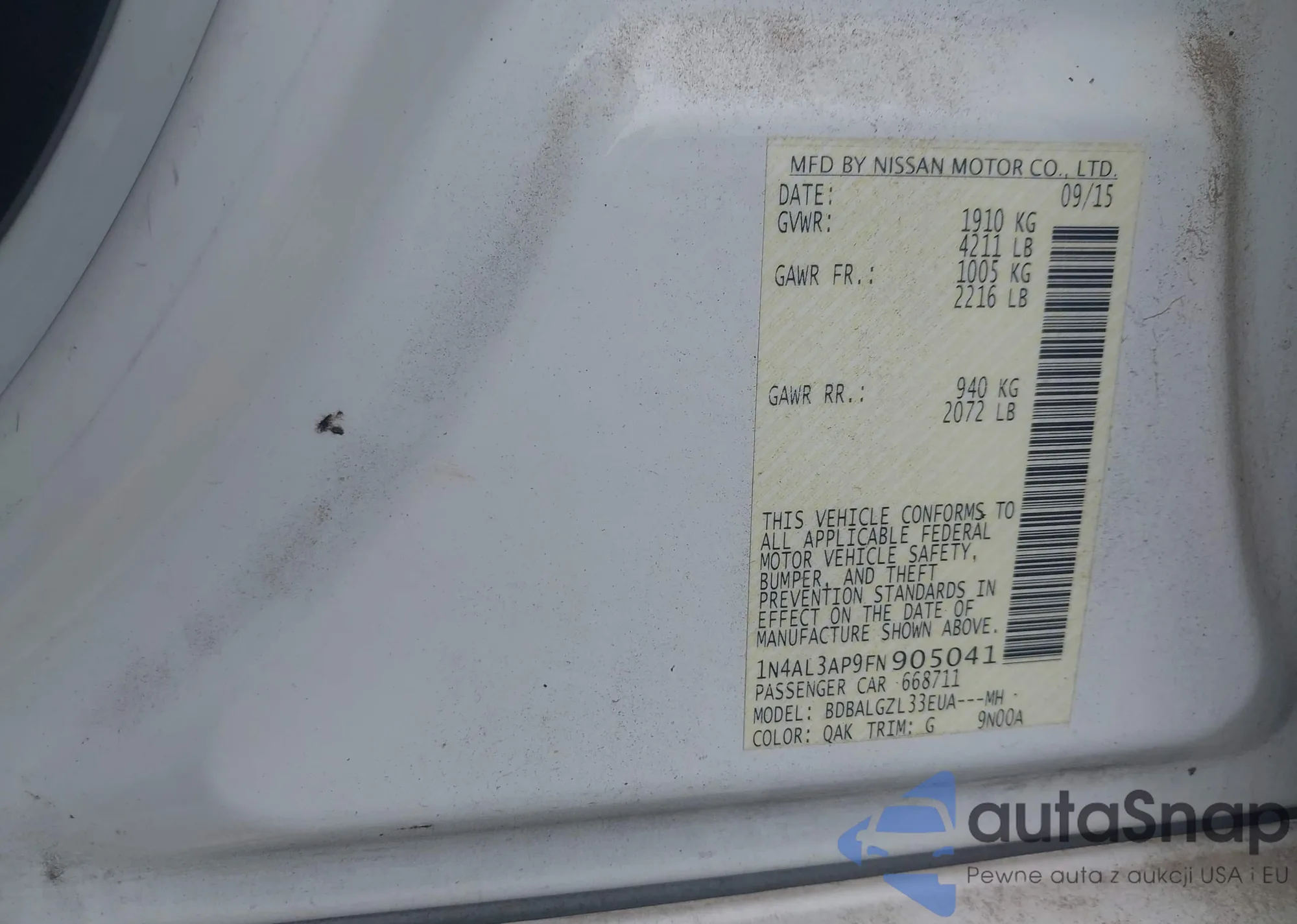 VIN: 1N4AL3AP9FN905041