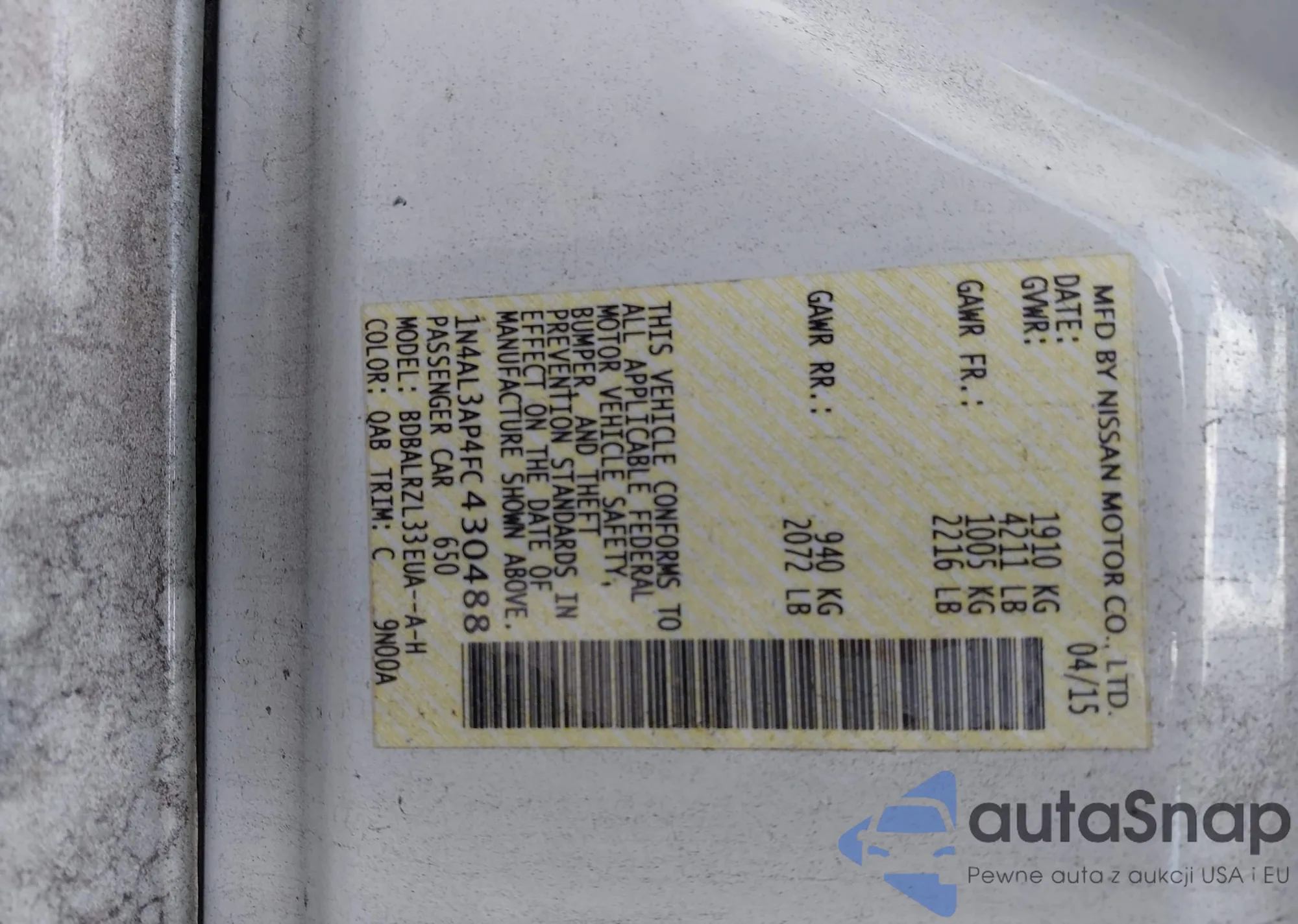 VIN: 1N4AL3AP4FC430488
