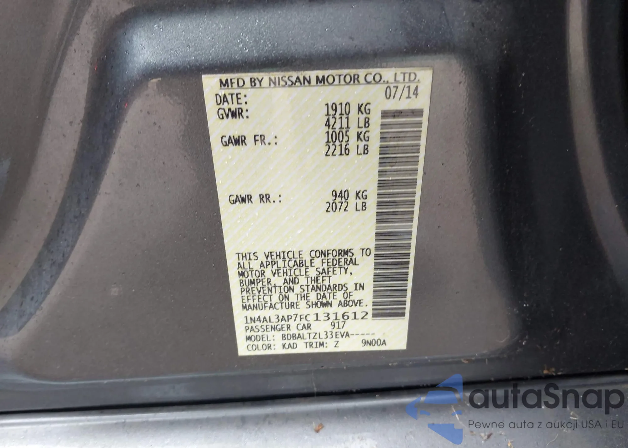 VIN: 1N4AL3AP7FC131612