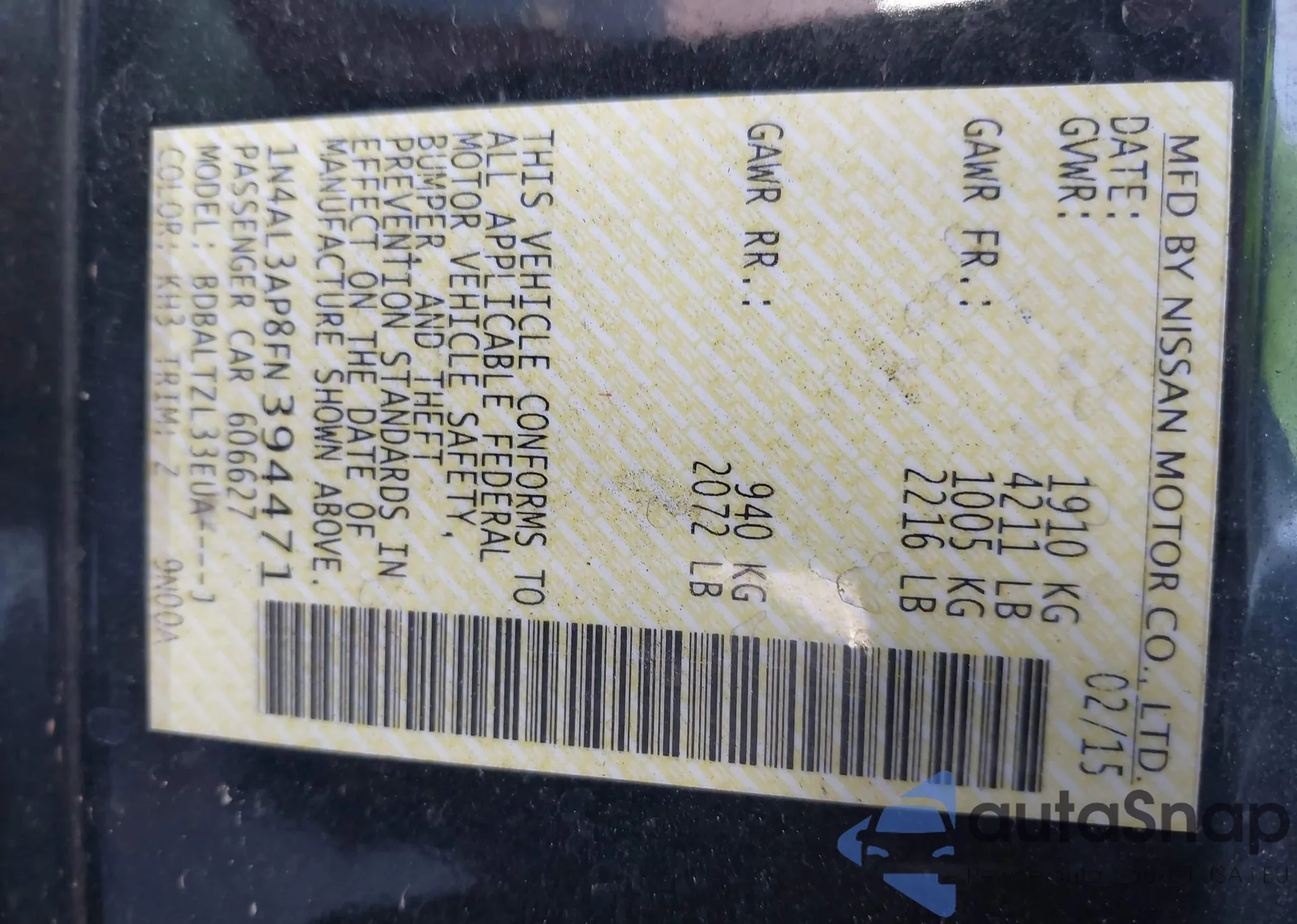 • VIN: 1N4AL3AP8FN394471