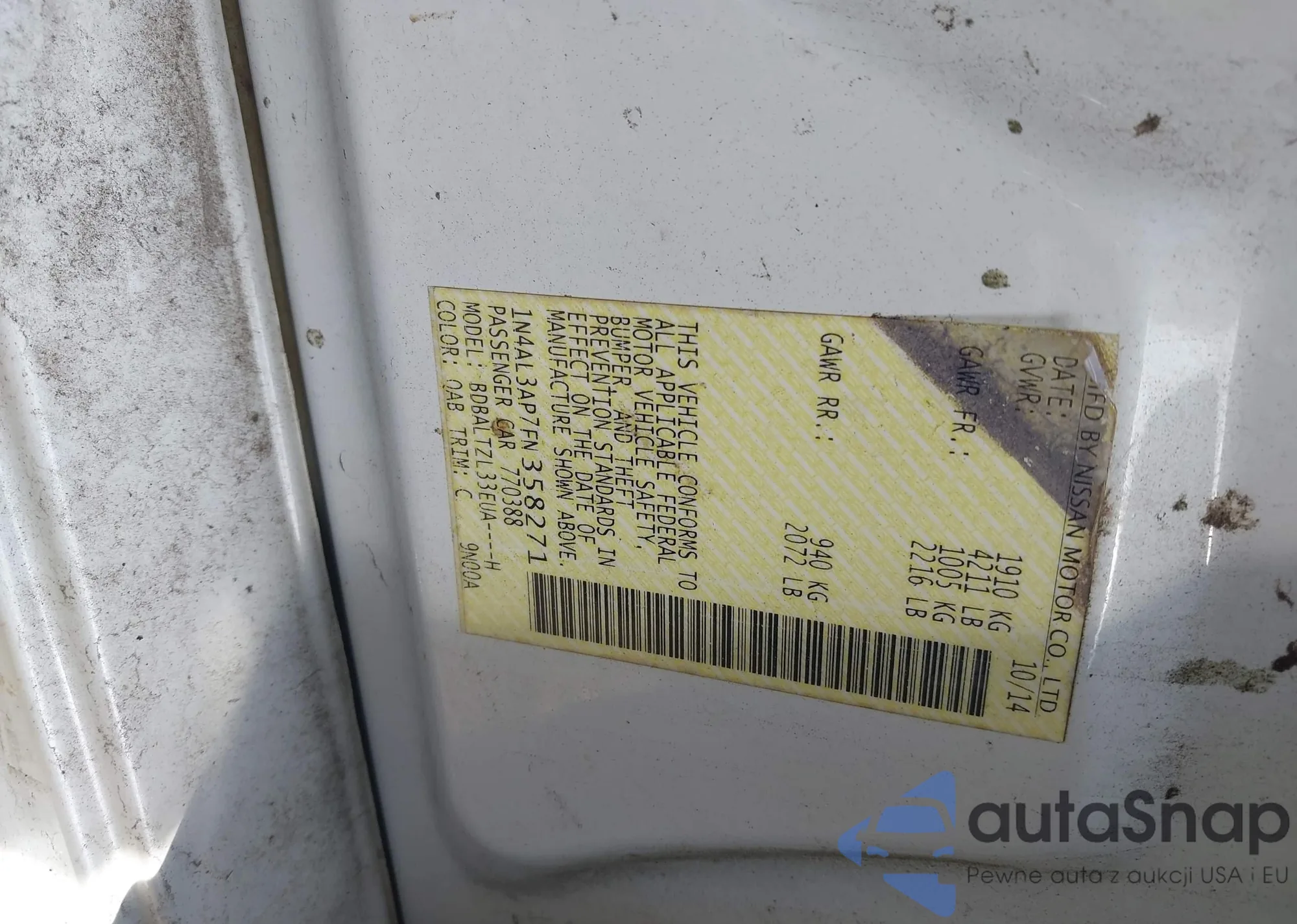 • VIN: 1N4AL3AP7FN358271