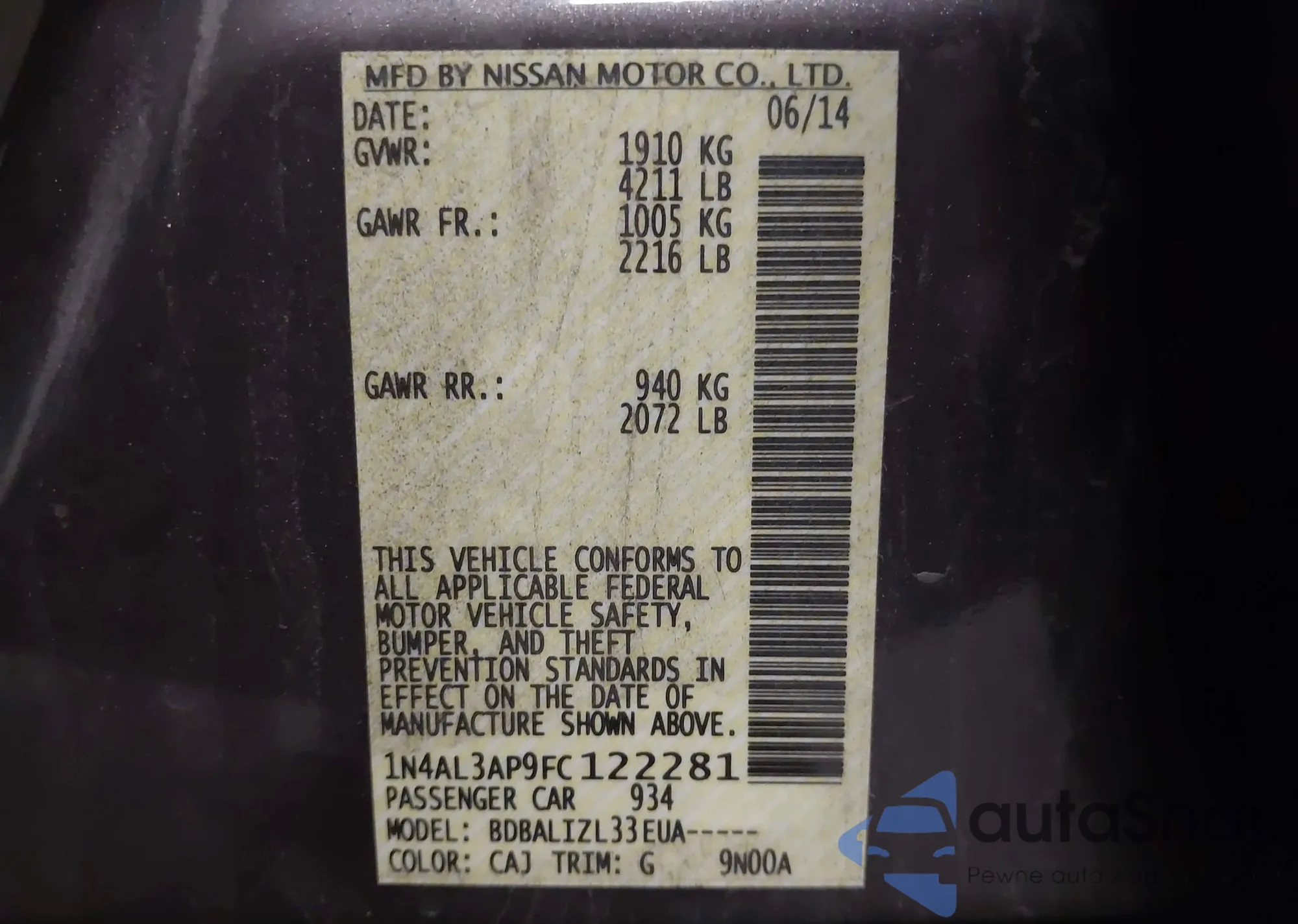 VIN: 1N4AL3AP9FC122281