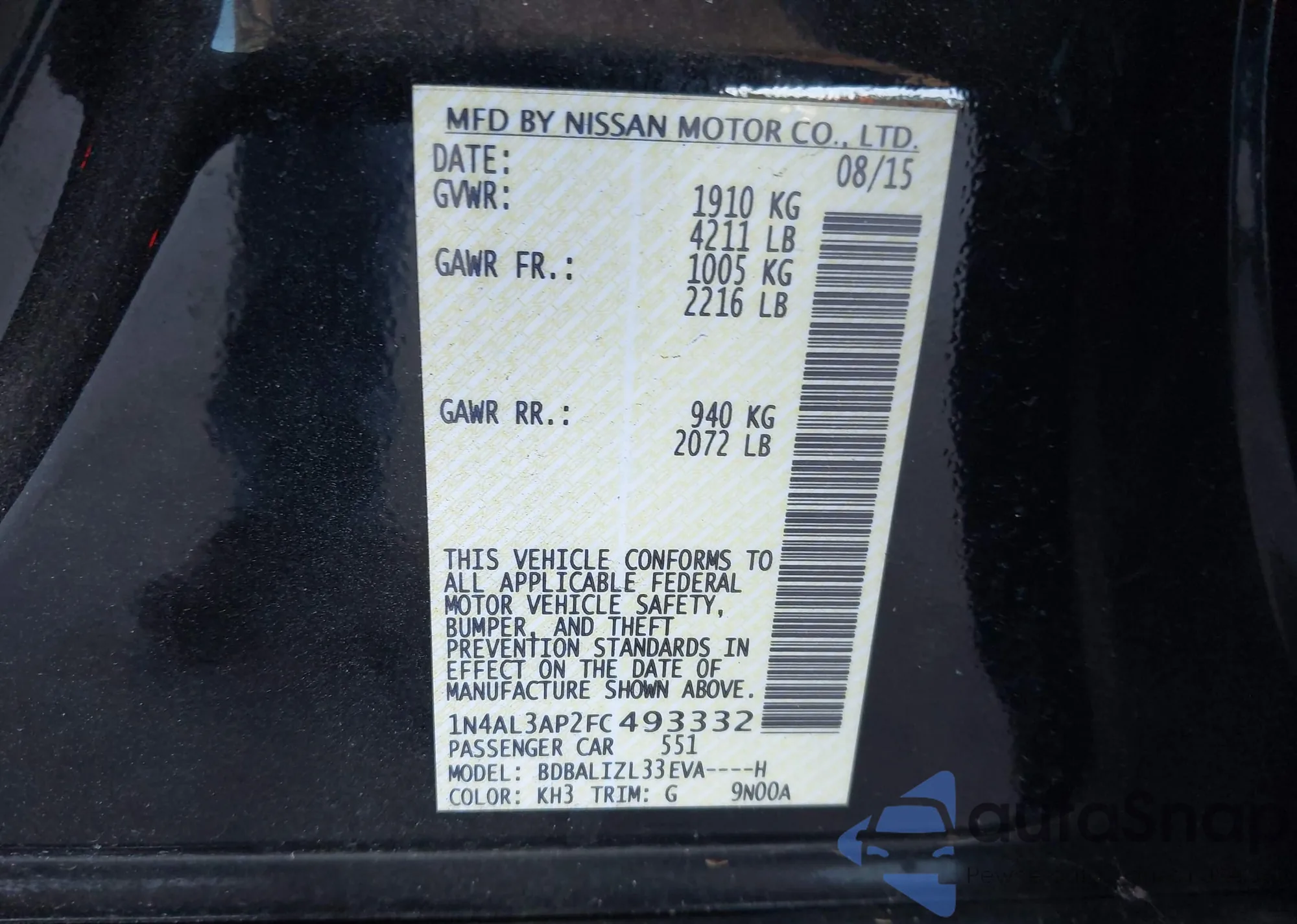 VIN: 1N4AL3AP2FC493332
