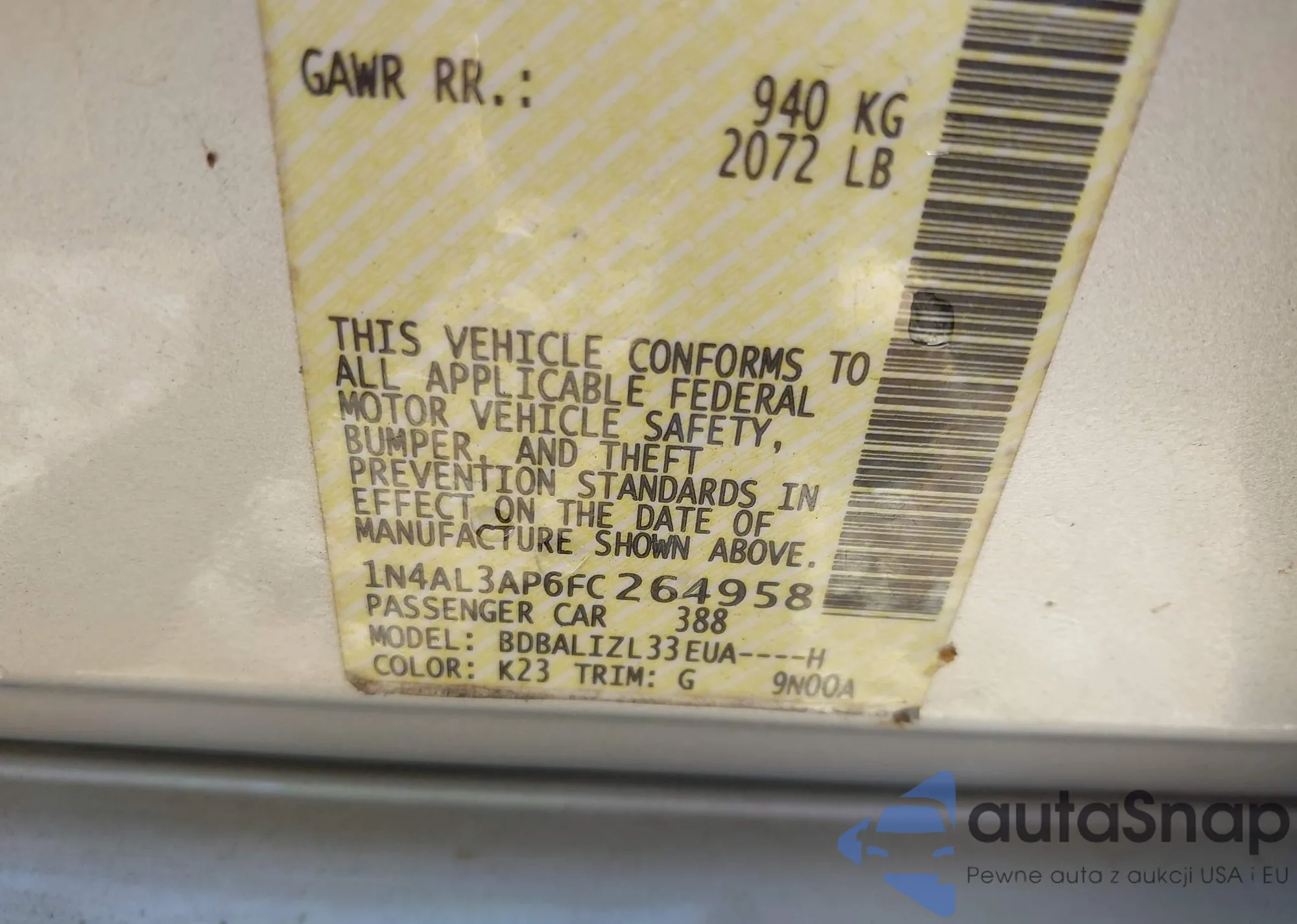 VIN: 1N4AL3AP6FC264958