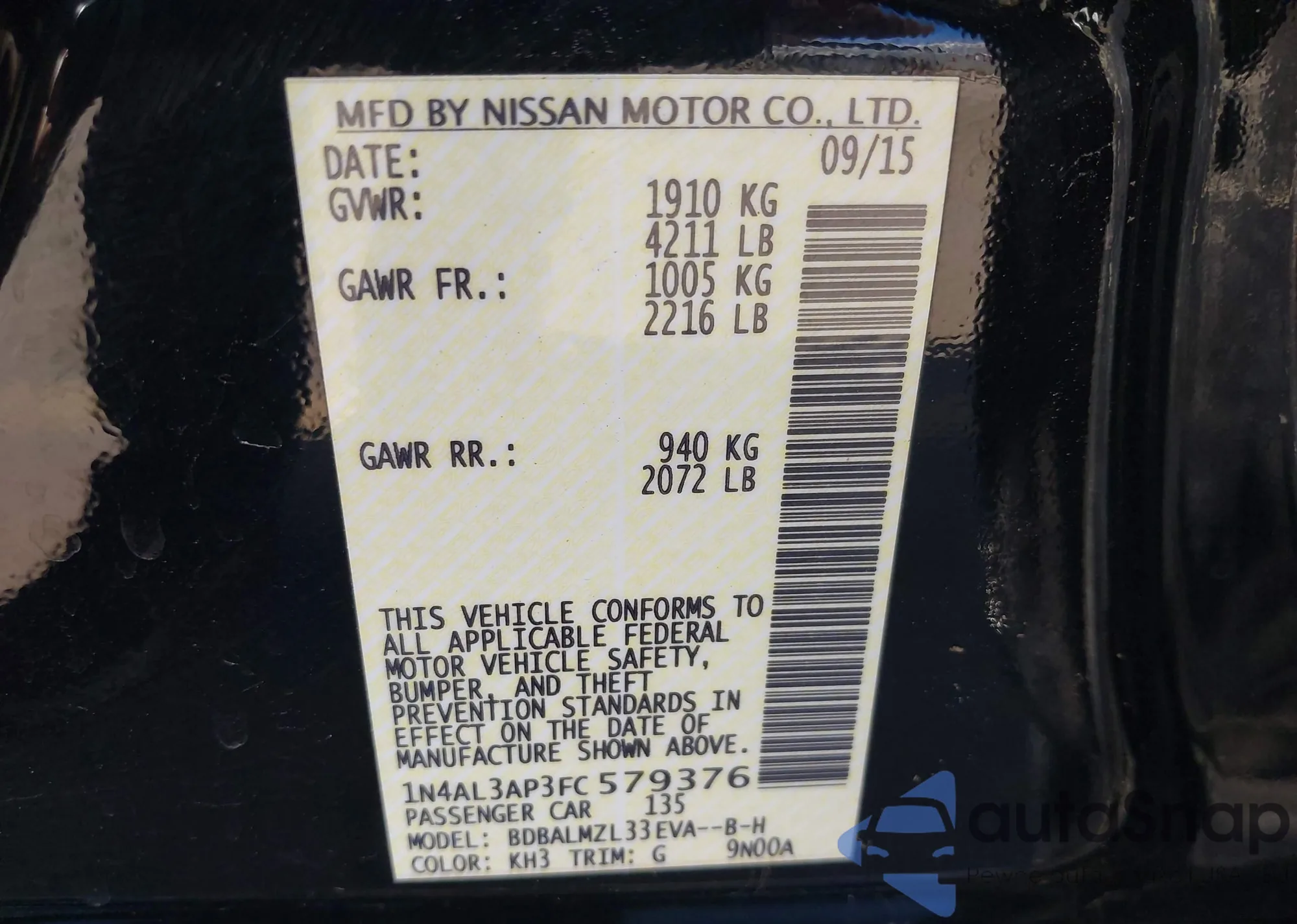 VIN: 1N4AL3AP3FC579376