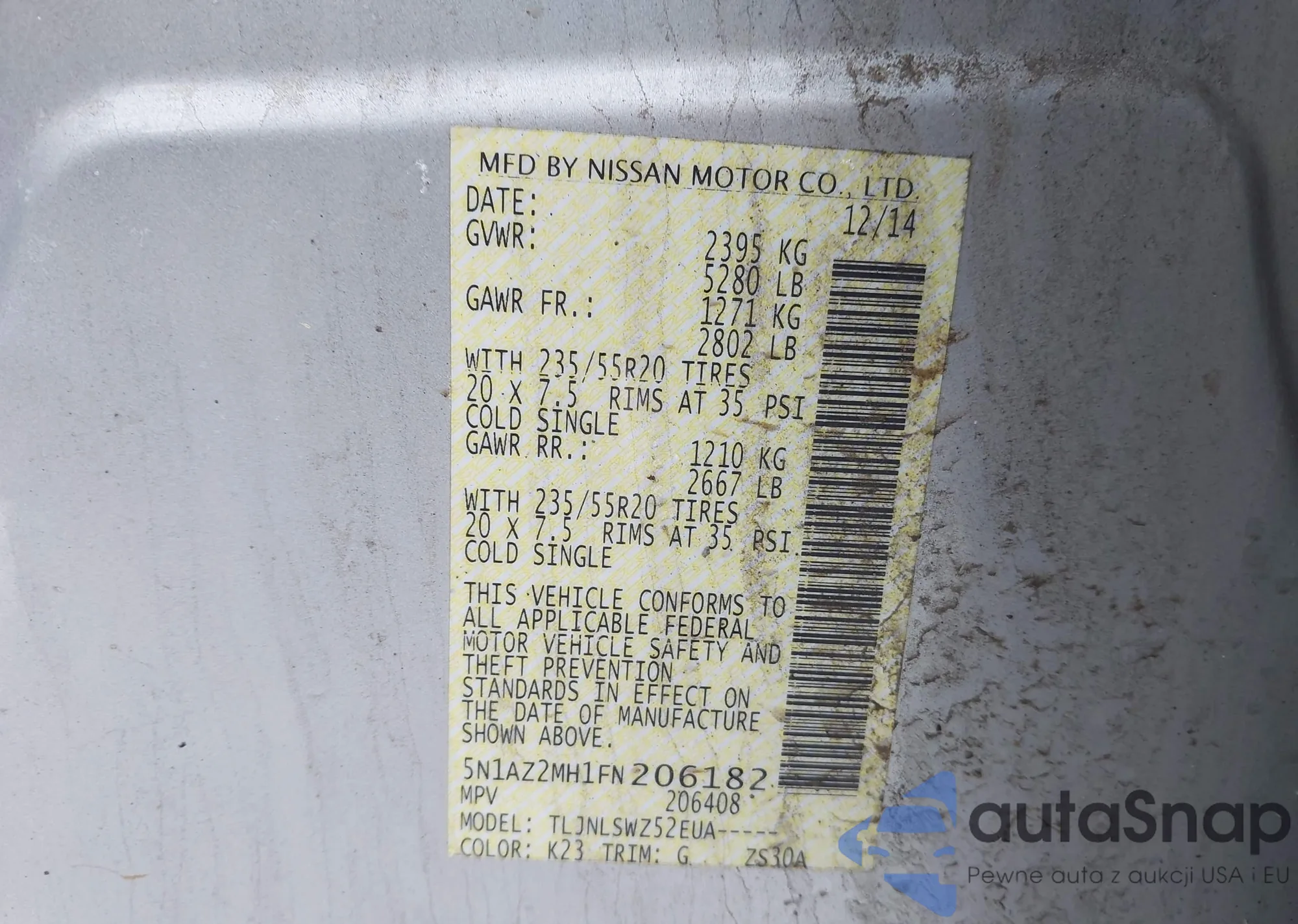 VIN: 5N1AZ2MH1FN206182