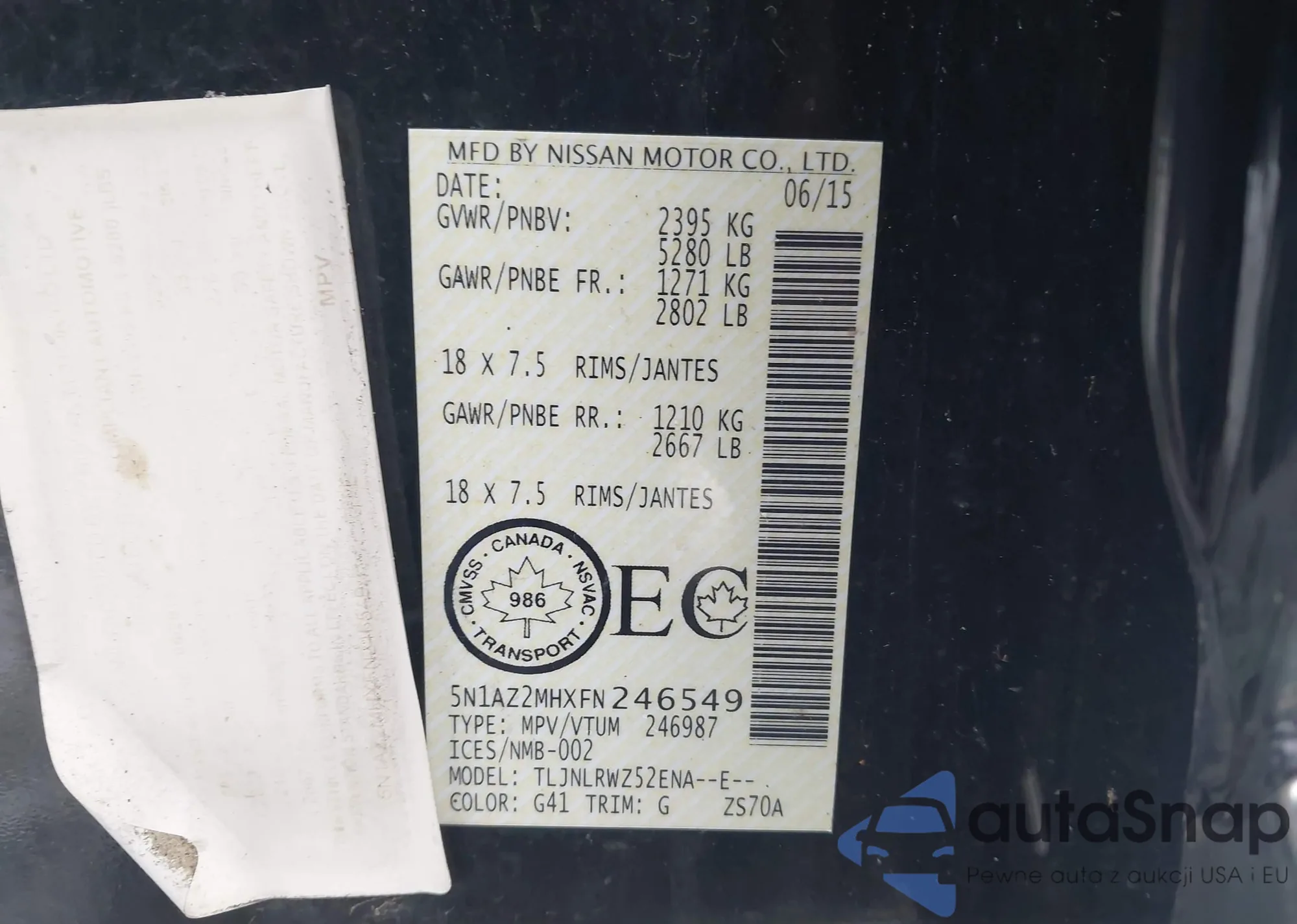 Samochód Nissan Murano 2015 (VIN 5N1AZ2MHXFN246549) był już licytowany 1 razy i/lub sprzedaje go niezweryfikowany sprzedawca. Zalecamy raport Carfax i potwierdzenie możliwości rejestracji pojazdu przed zakupem.