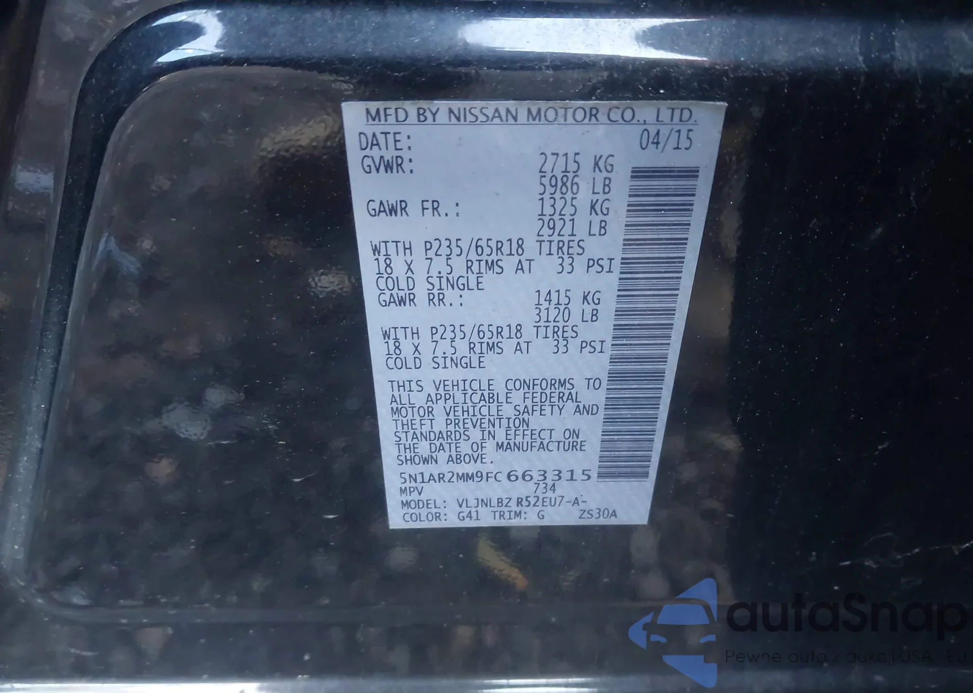 VIN: 5N1AR2MM9FC663315