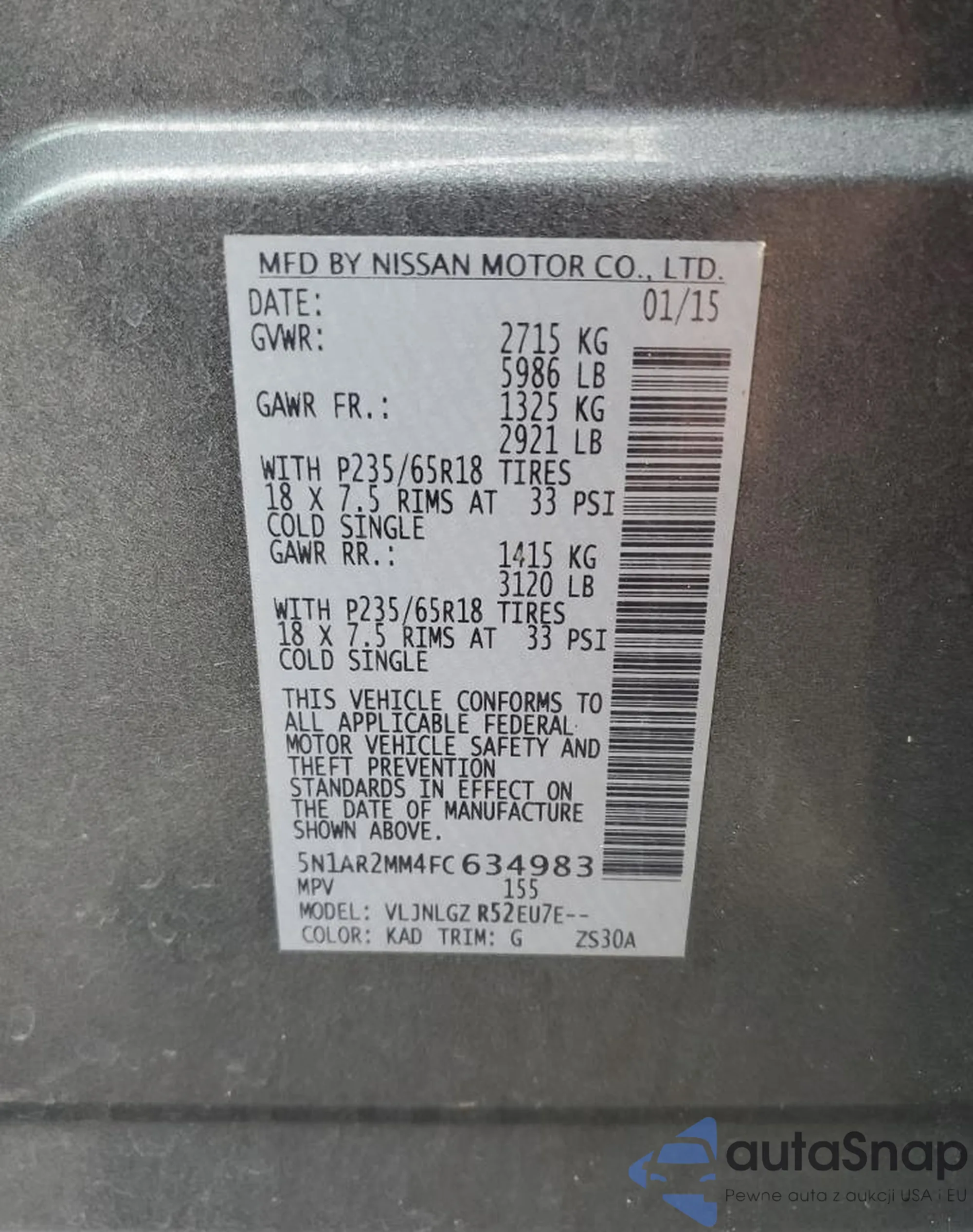 Nissan Pathfinder 2015 – Historia pojazdu (sprzedany na COPART)