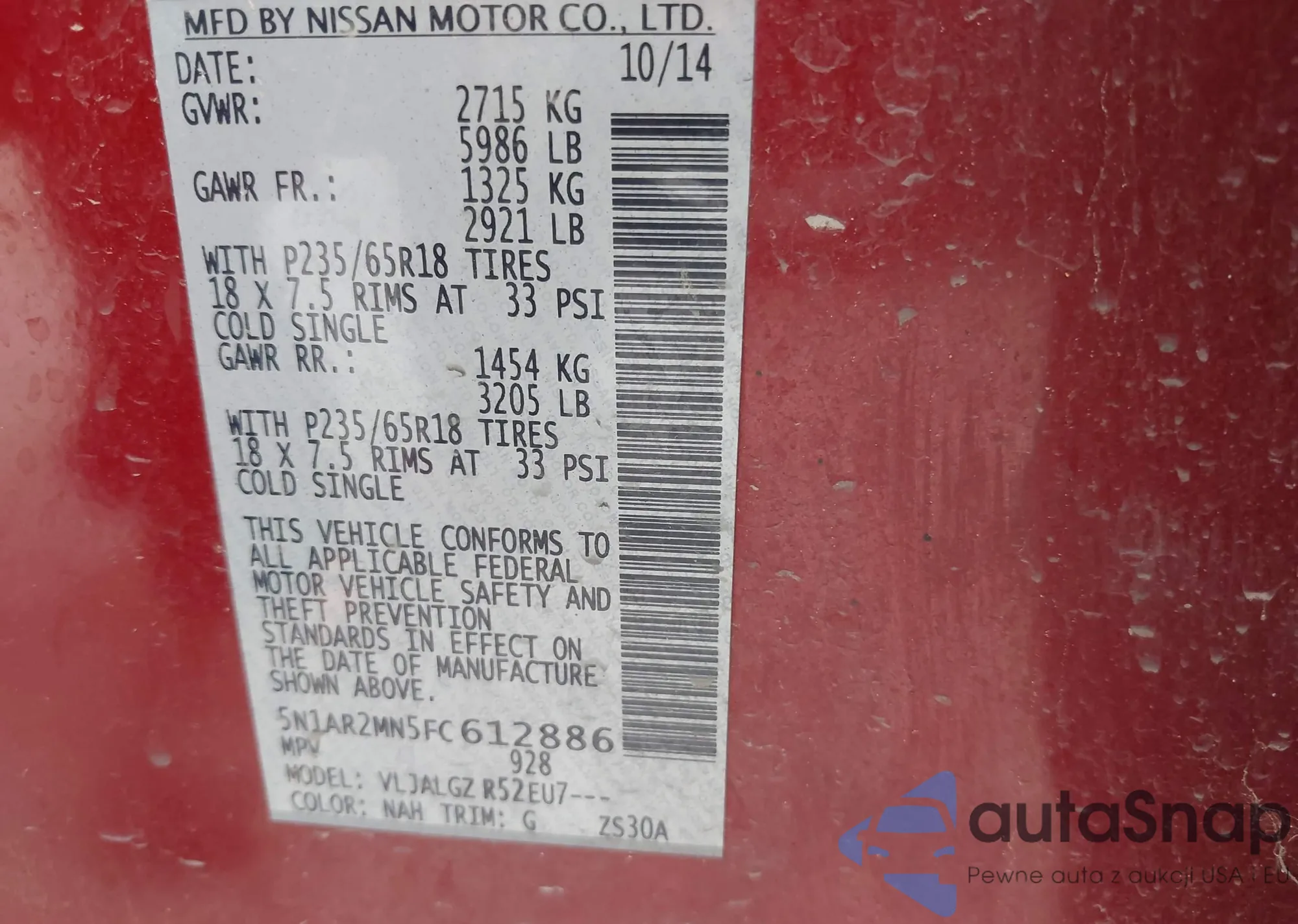 VIN: 5N1AR2MN5FC612886
