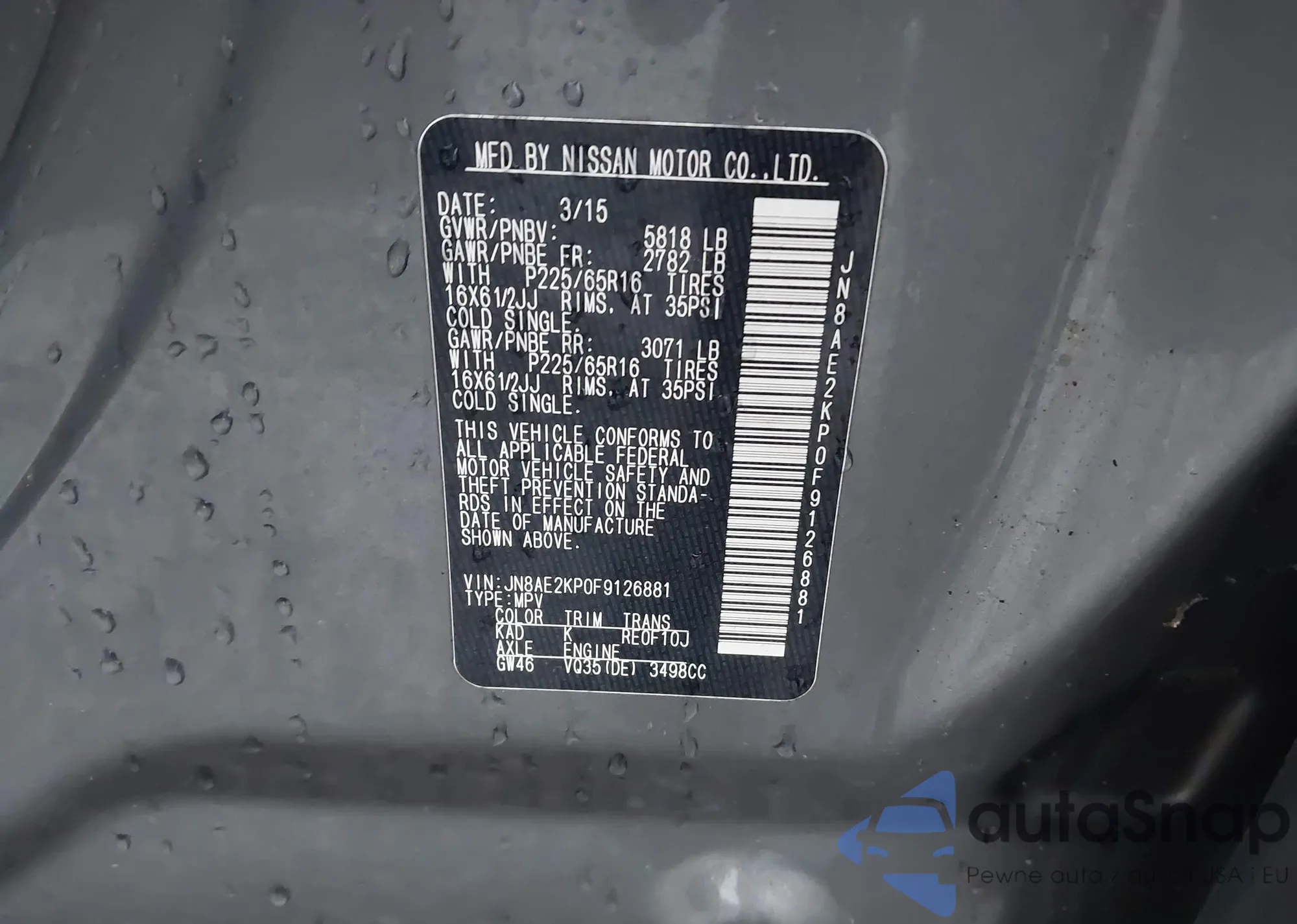 Marka: 2015 Nissan Quest S/S...
