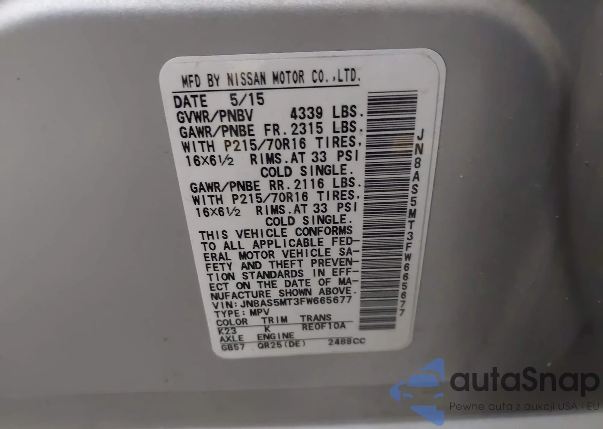 VIN: JN8AS5MT3FW665677