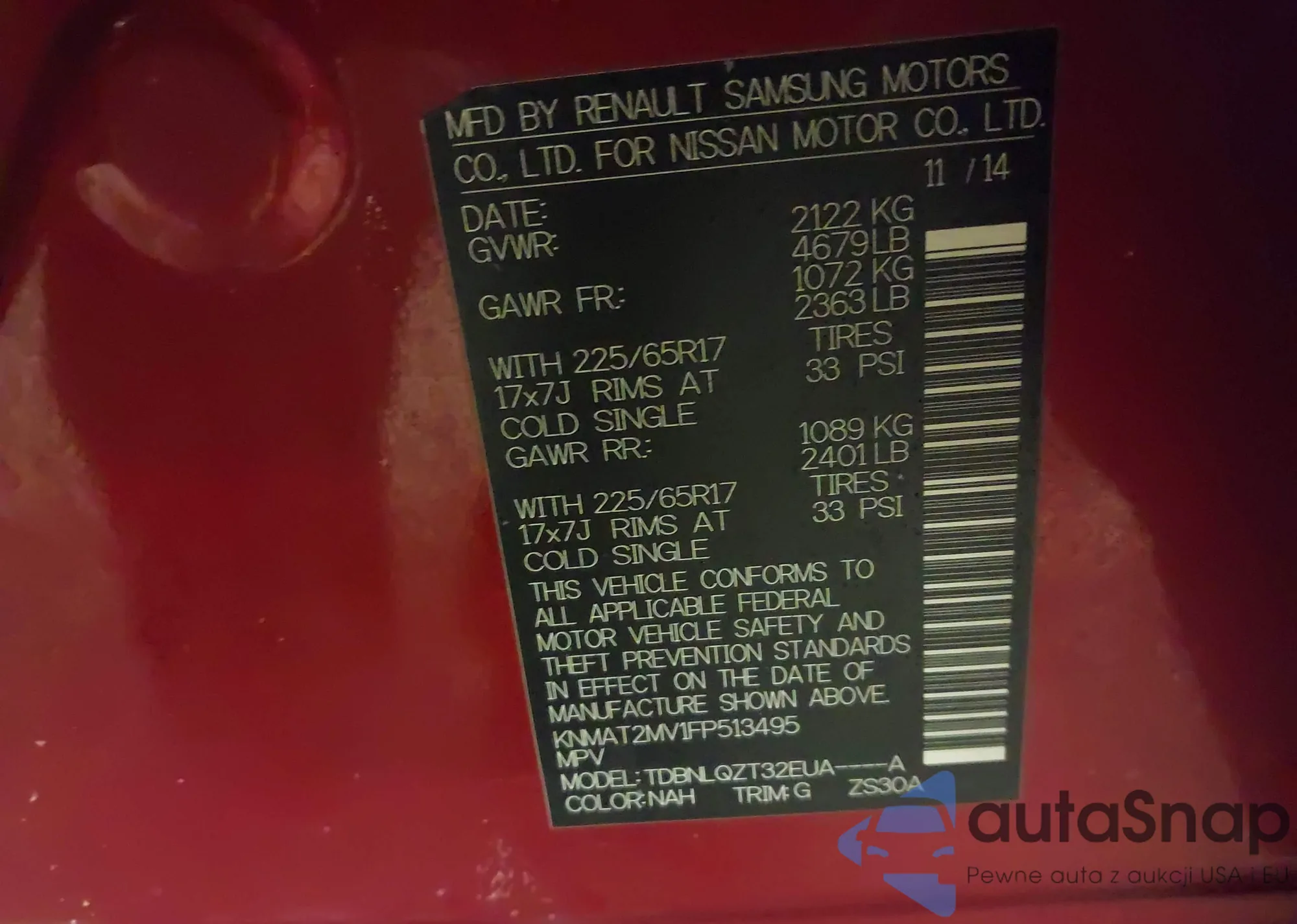 Samochód Nissan Rogue 2015 (VIN KNMAT2MV1FP513495) nie był wcześniej licytowany. Dokumenty są czyste, przebieg odpowiada lub jest niższy niż średnia rynku. Sprzedaje go firma ubezpieczeniowa – polecamy zakup. Dostawa do portu zajmie ok. 6–8 tygodni.