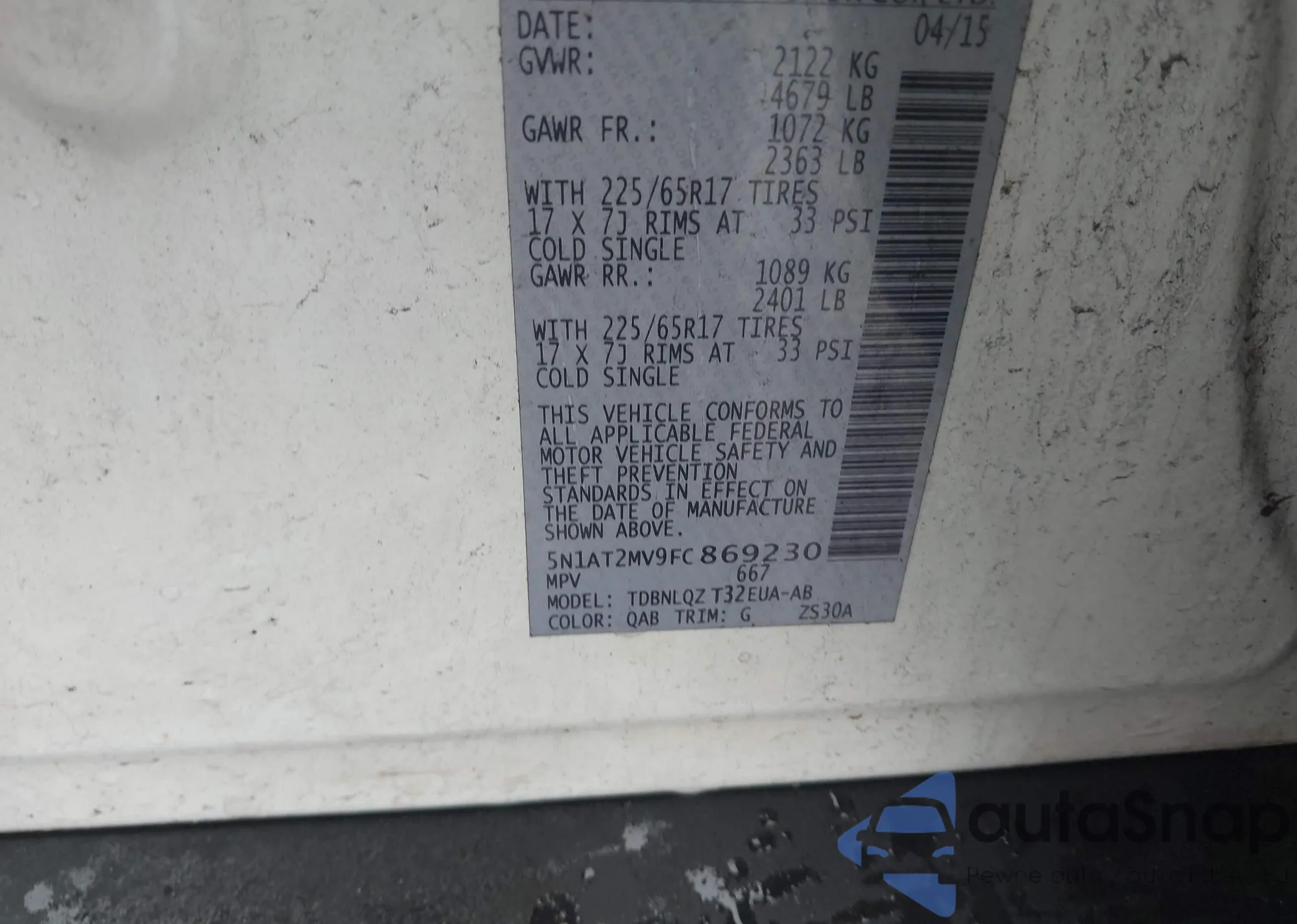 VIN: 5N1AT2MV9FC869230